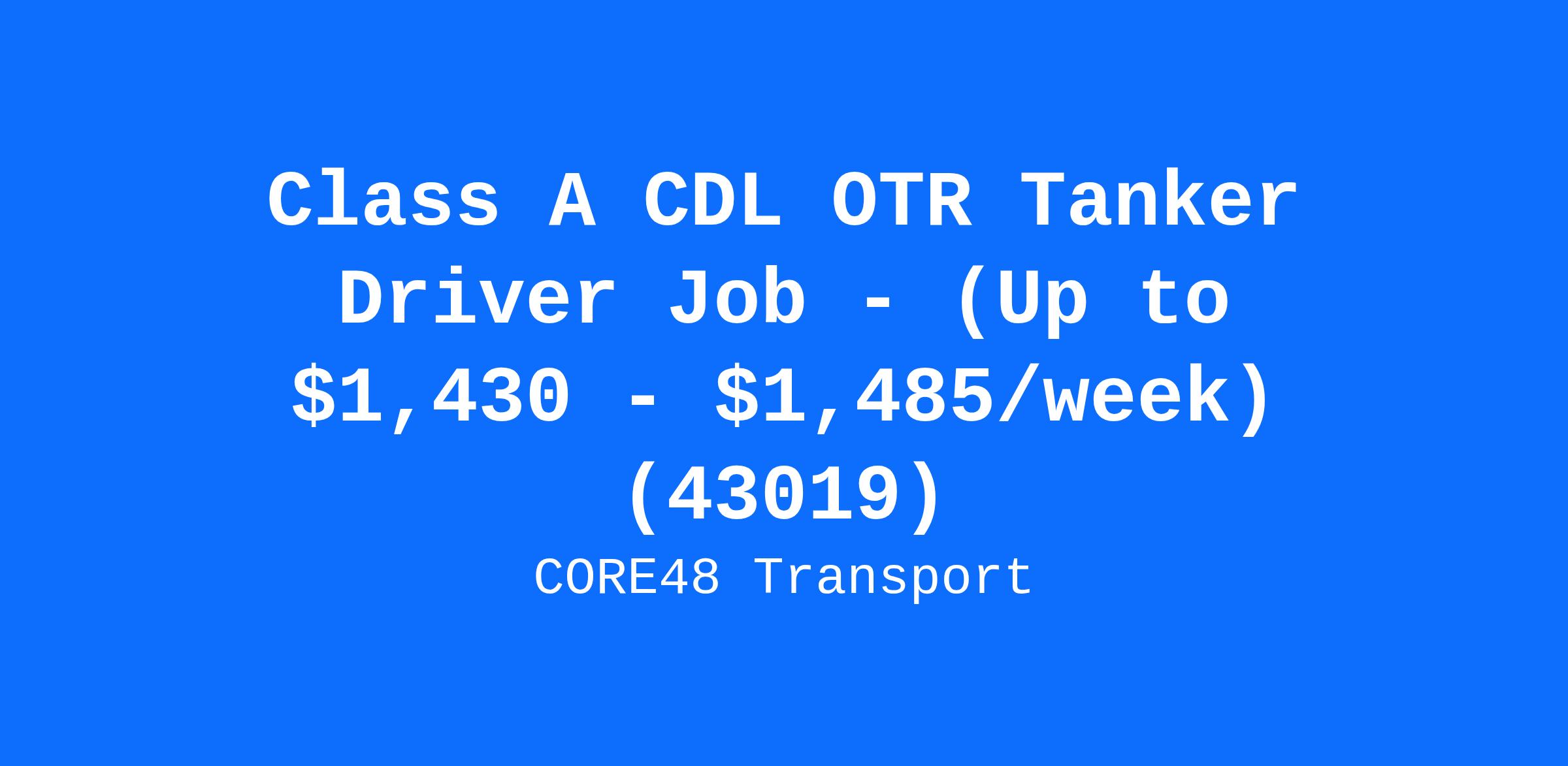 Class A CDL OTR Tanker Driver Job - (Up to $1,430 - $1,485/week) (43019)