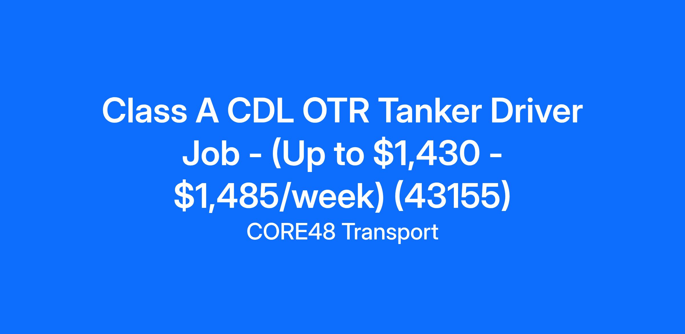 Class A CDL OTR Tanker Driver Job - (Up to $1,430 - $1,485/week) (43155)