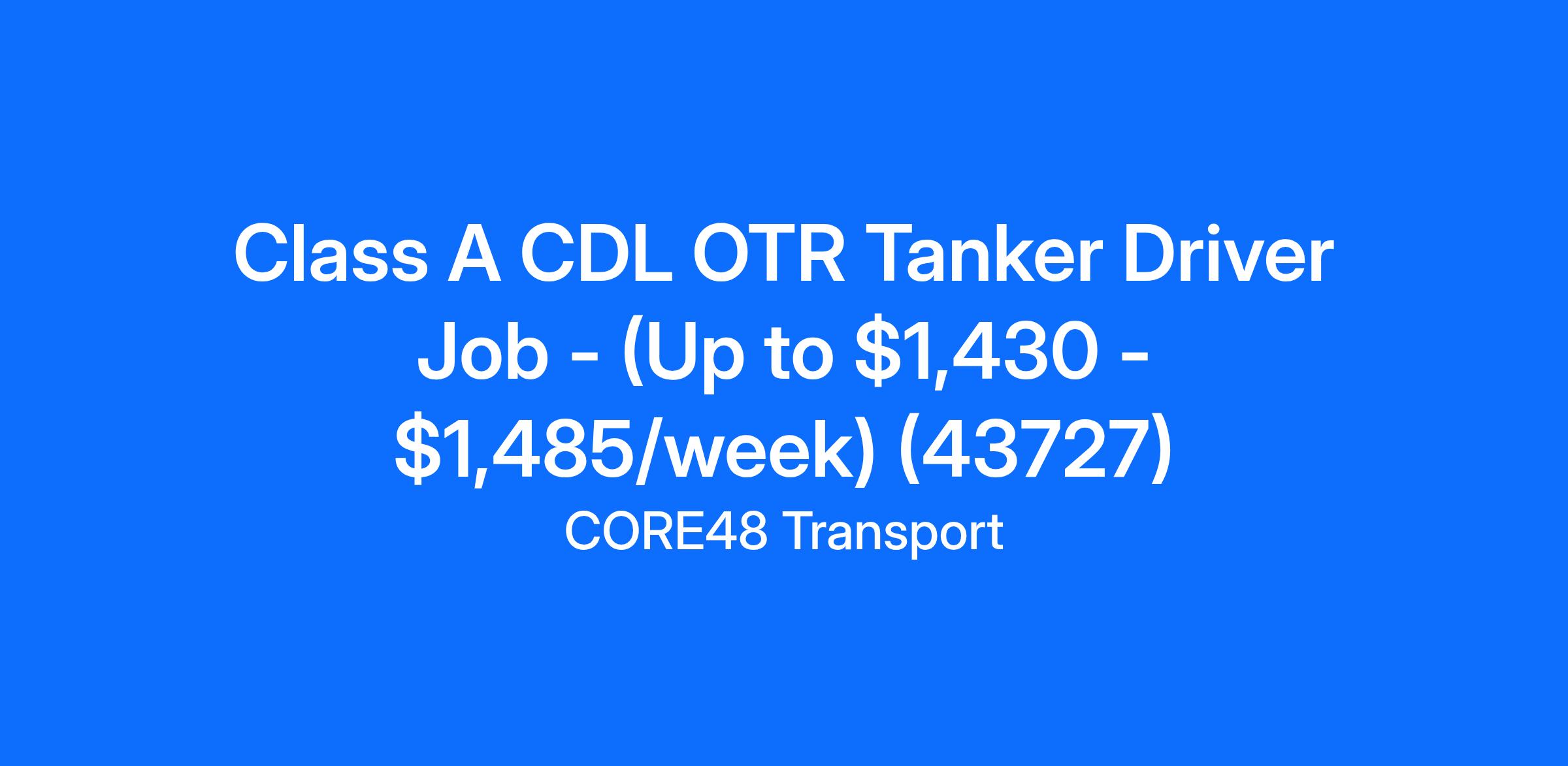 Class A CDL OTR Tanker Driver Job - (Up to $1,430 - $1,485/week) (43727)