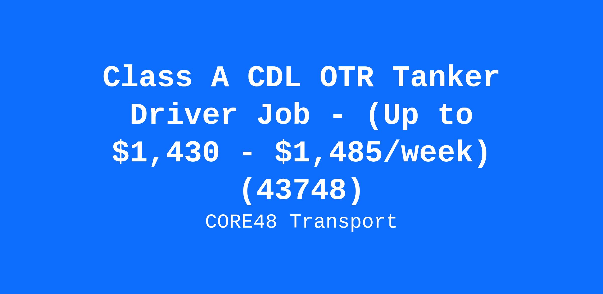 Class A CDL OTR Tanker Driver Job - (Up to $1,430 - $1,485/week) (43748)
