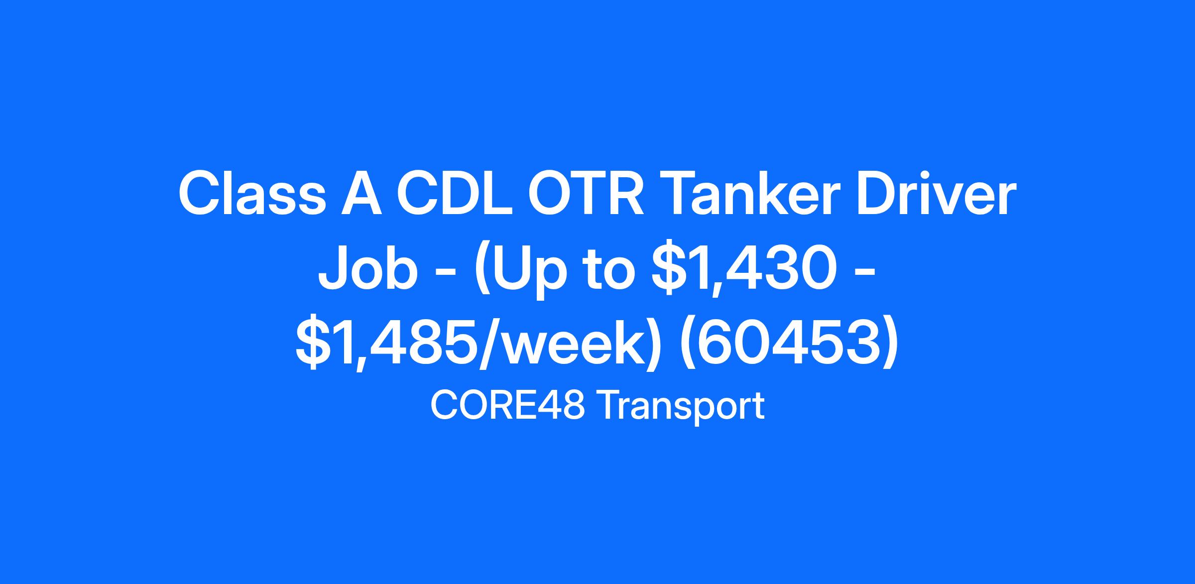 Class A CDL OTR Tanker Driver Job - (Up to $1,430 - $1,485/week) (60453)