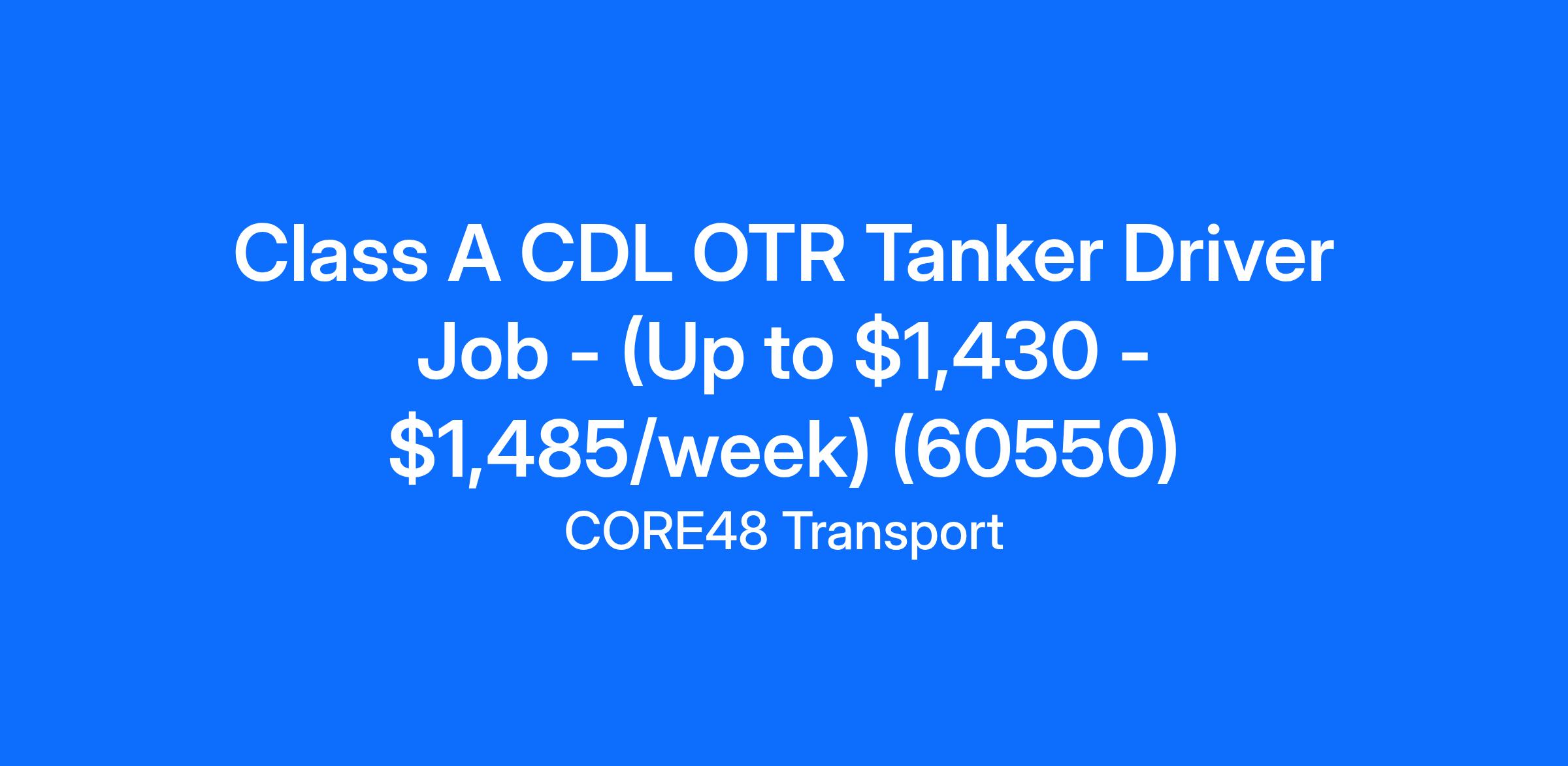 Class A CDL OTR Tanker Driver Job - (Up to $1,430 - $1,485/week) (60550)