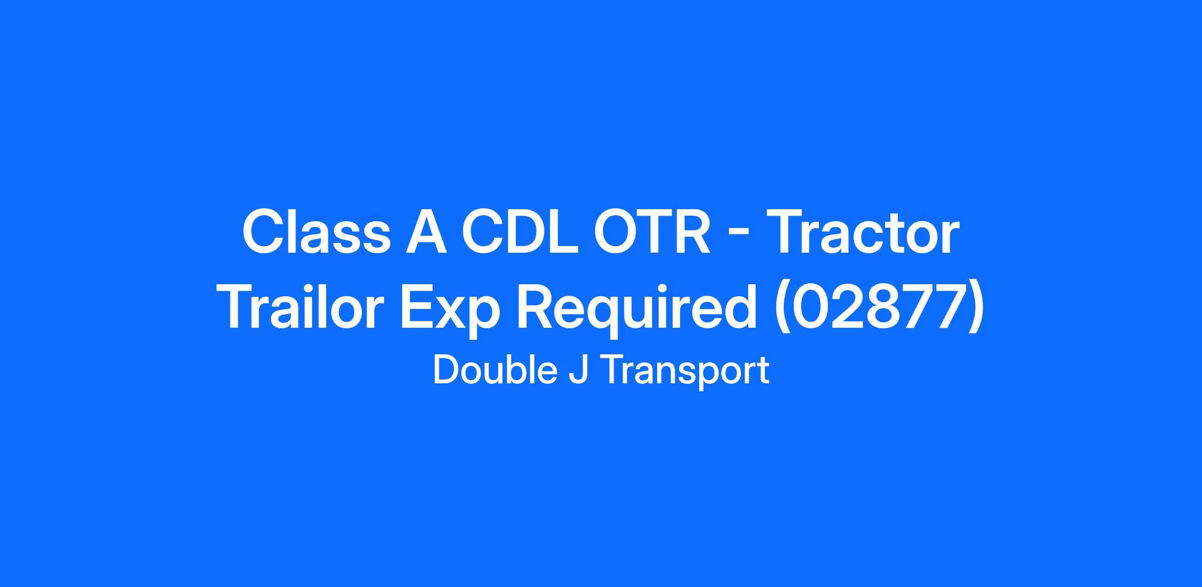 Class A CDL OTR - Tractor Trailor Exp Required (02877)
