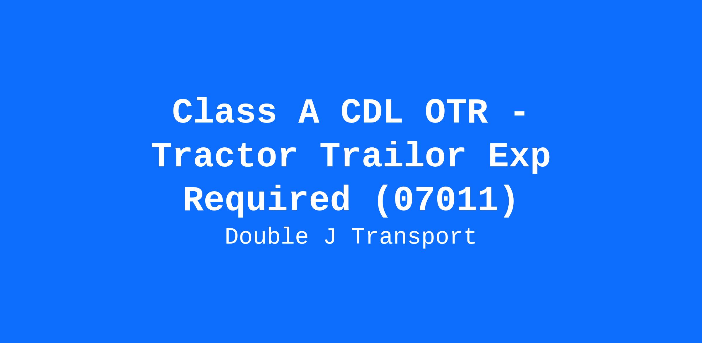 Class A CDL OTR - Tractor Trailor Exp Required (07011)