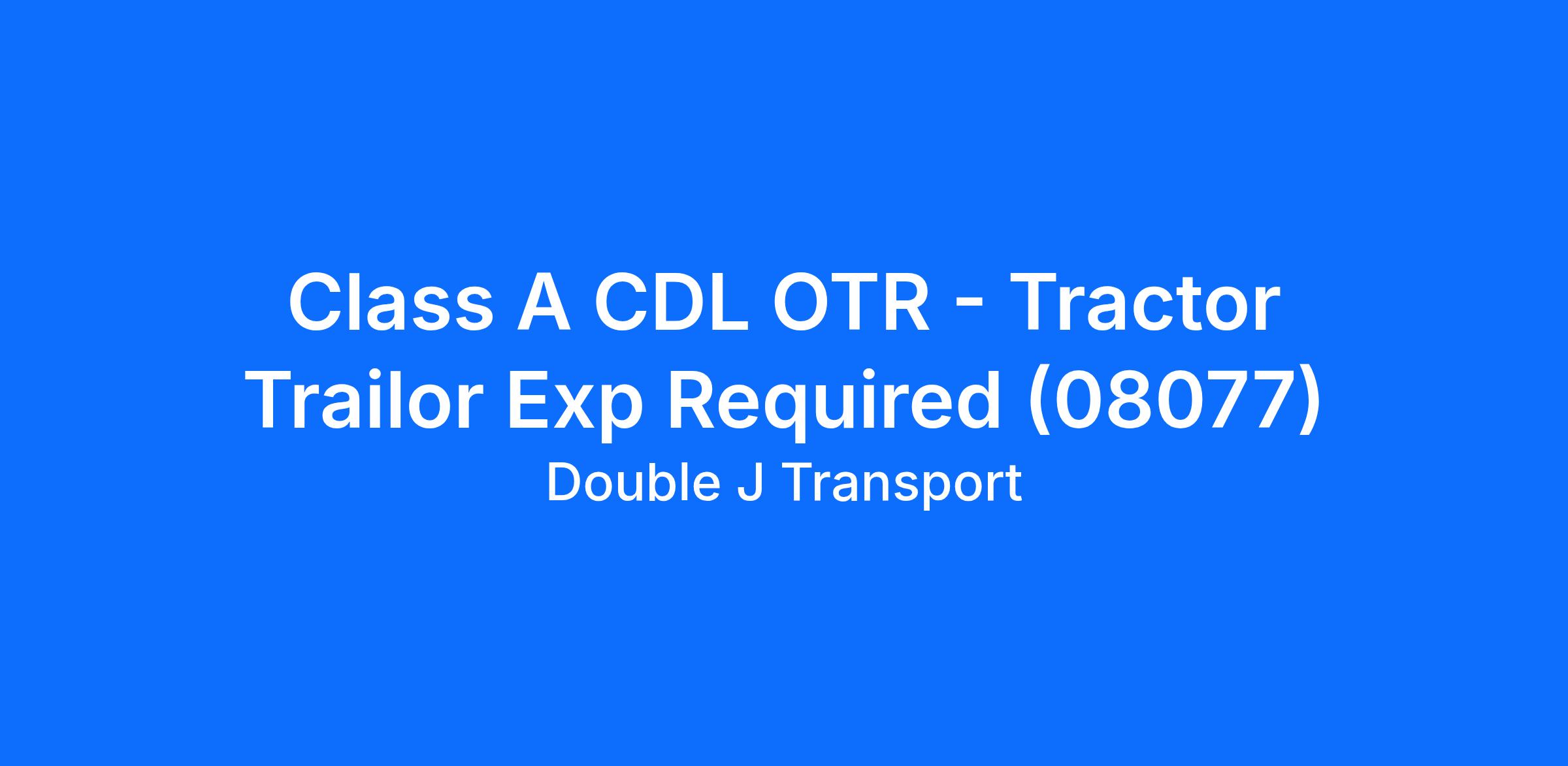 Class A CDL OTR - Tractor Trailor Exp Required (08077)