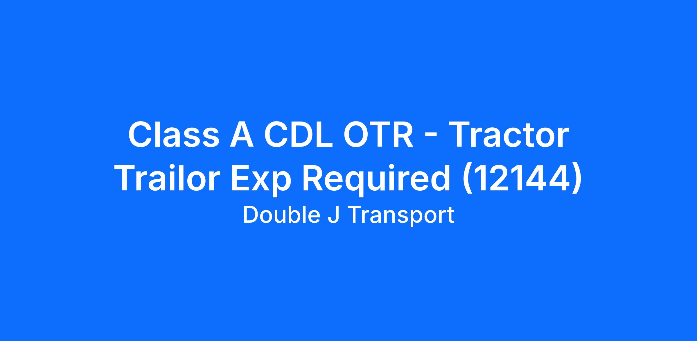 Class A CDL OTR - Tractor Trailor Exp Required (12144)