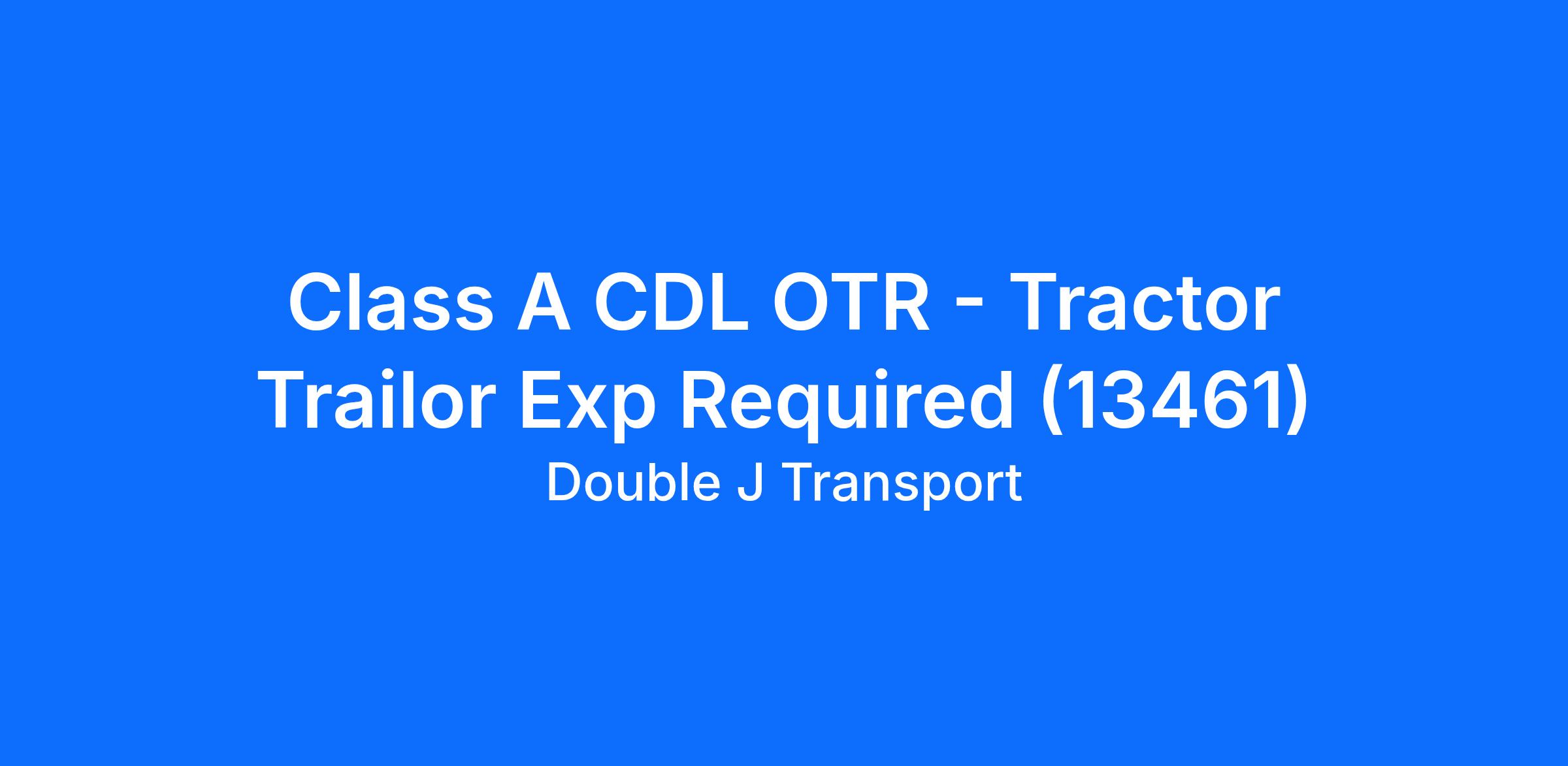 Class A CDL OTR - Tractor Trailor Exp Required (13461)