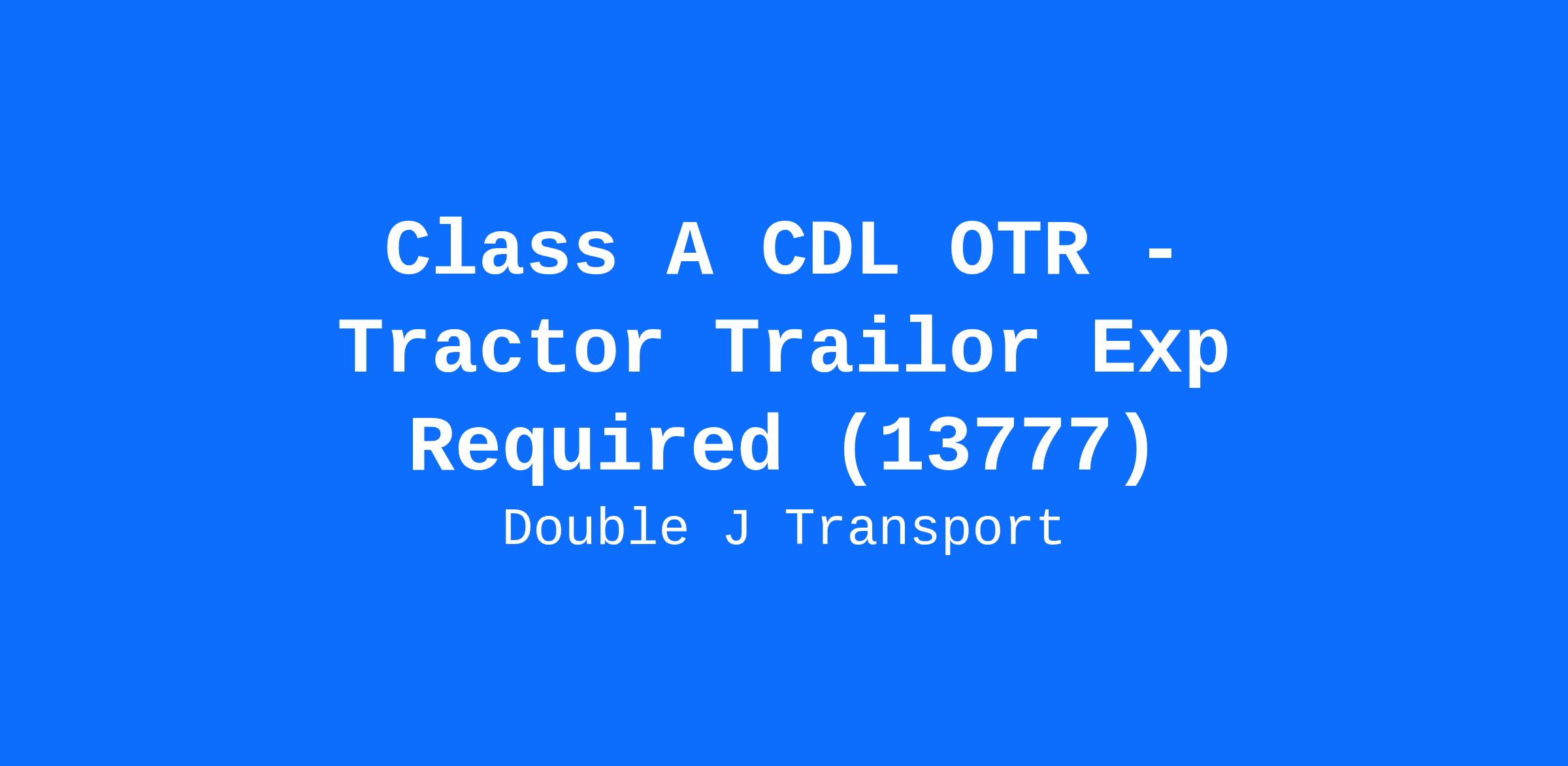 Class A CDL OTR - Tractor Trailor Exp Required (13777)