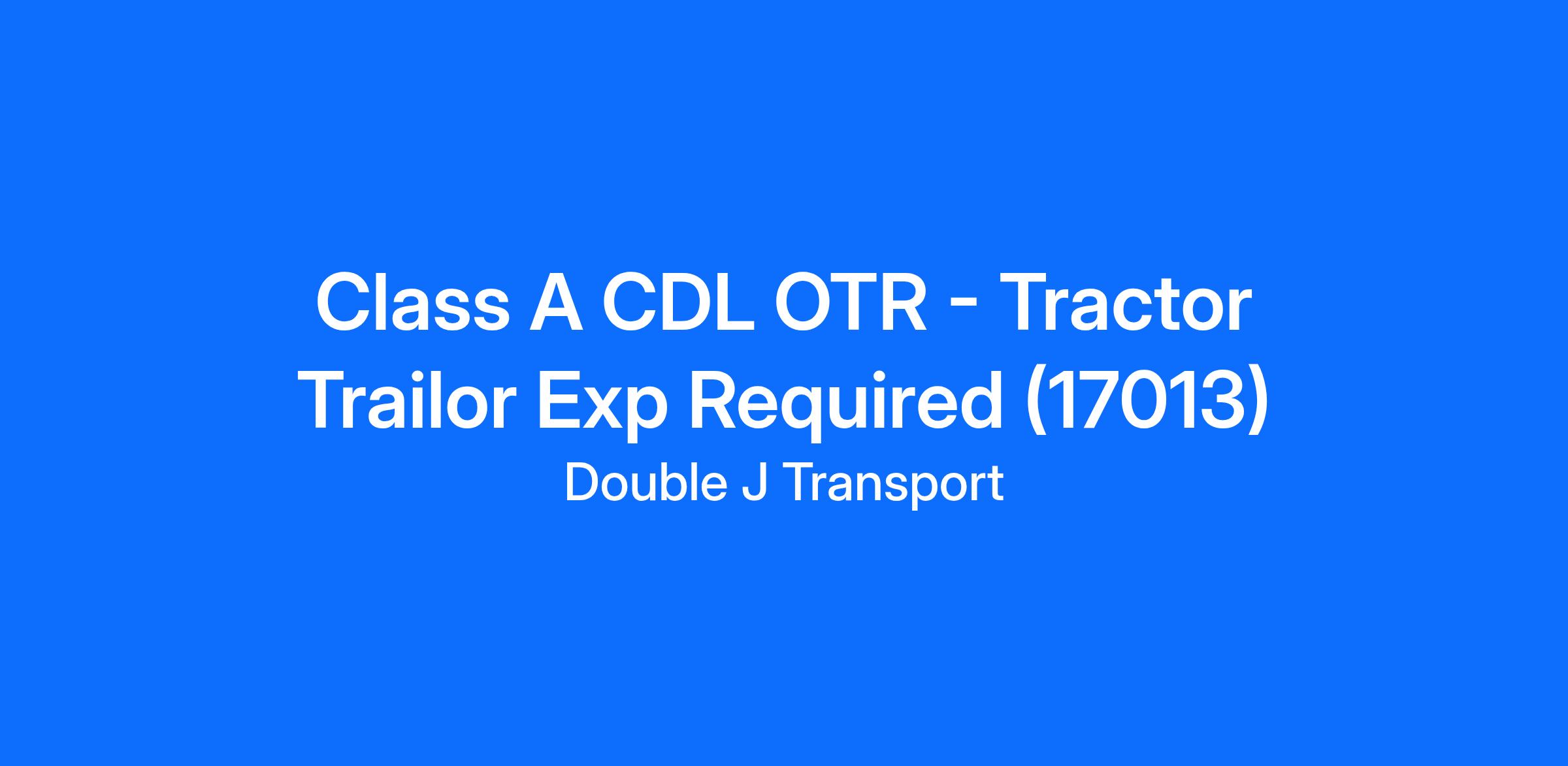 Class A CDL OTR - Tractor Trailor Exp Required (17013)