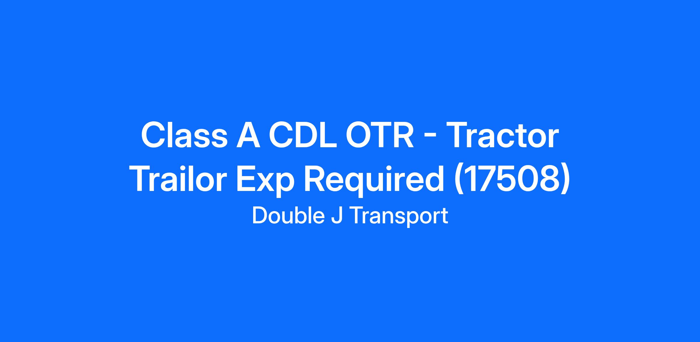 Class A CDL OTR - Tractor Trailor Exp Required (17508)