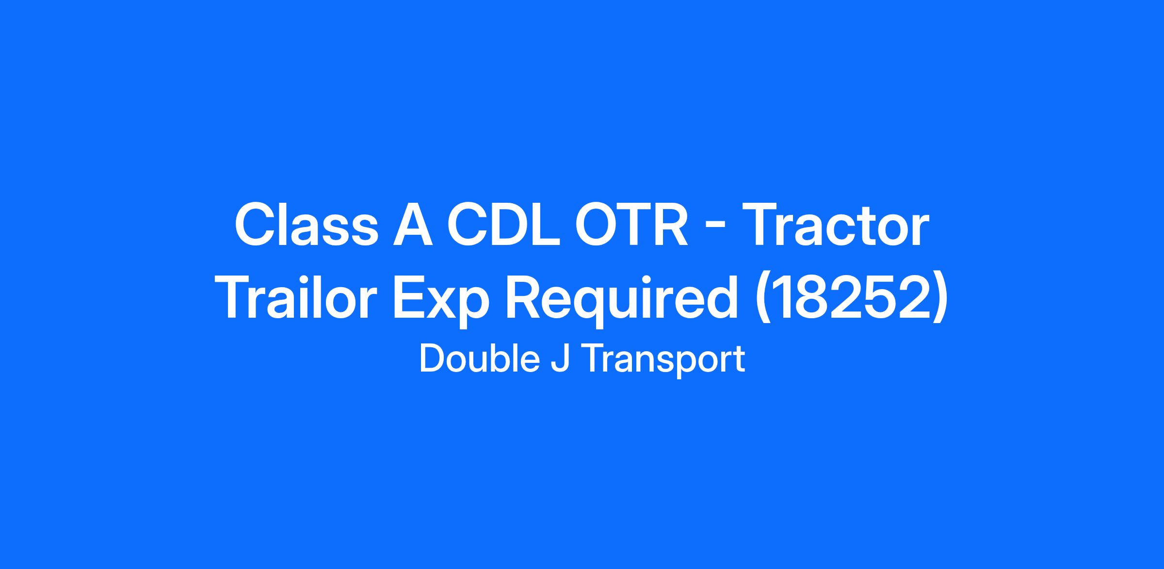 Class A CDL OTR - Tractor Trailor Exp Required (18252)