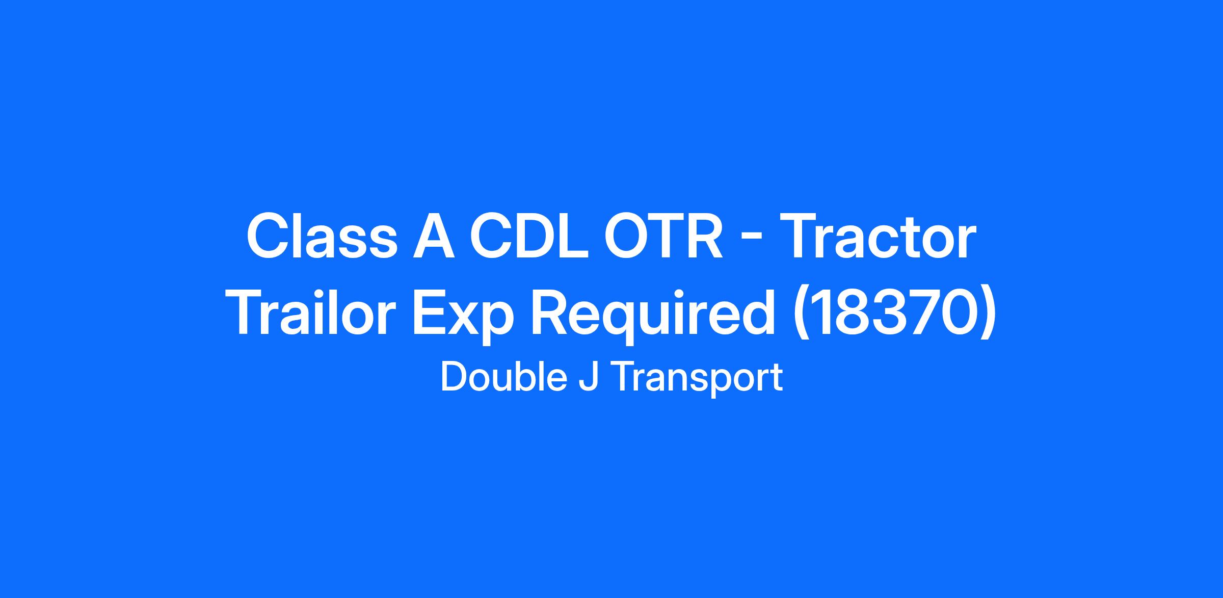 Class A CDL OTR - Tractor Trailor Exp Required (18370)