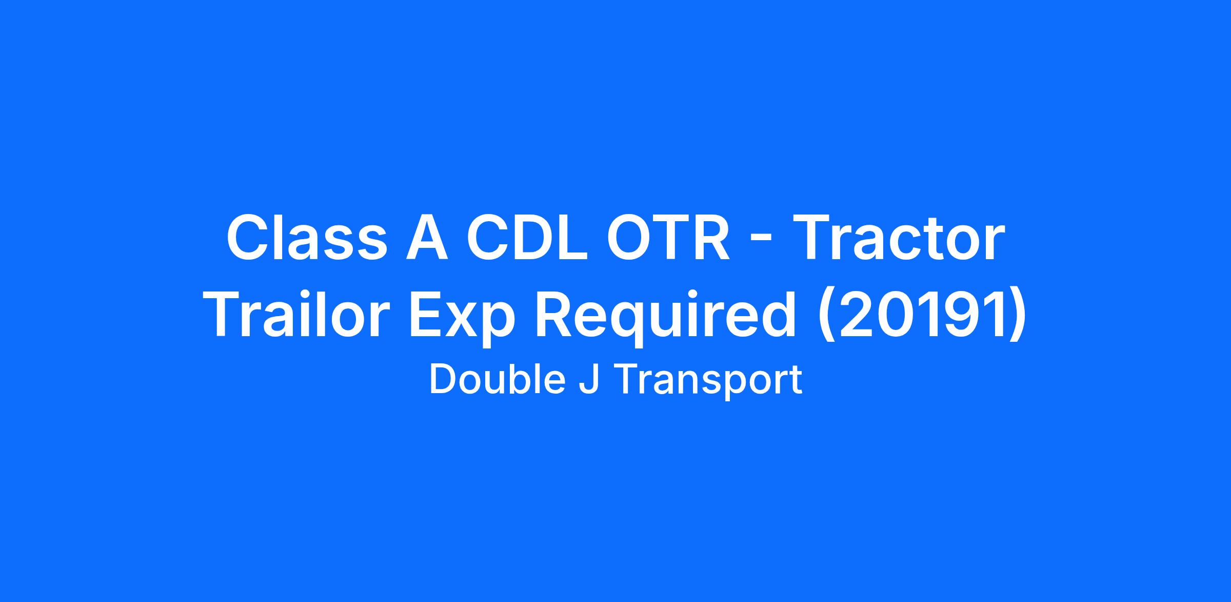 Class A CDL OTR - Tractor Trailor Exp Required (20191)