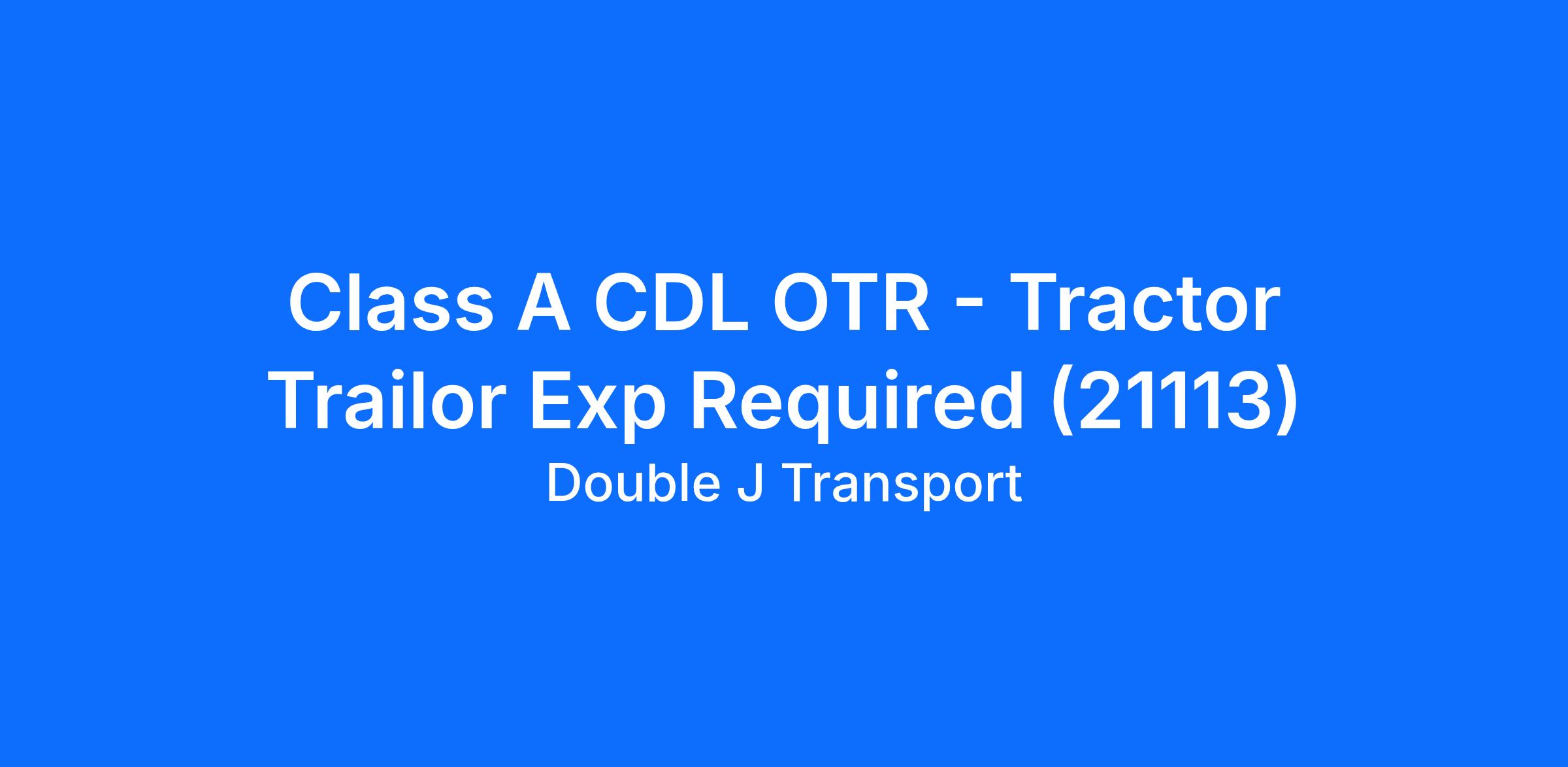 Class A CDL OTR - Tractor Trailor Exp Required (21113)