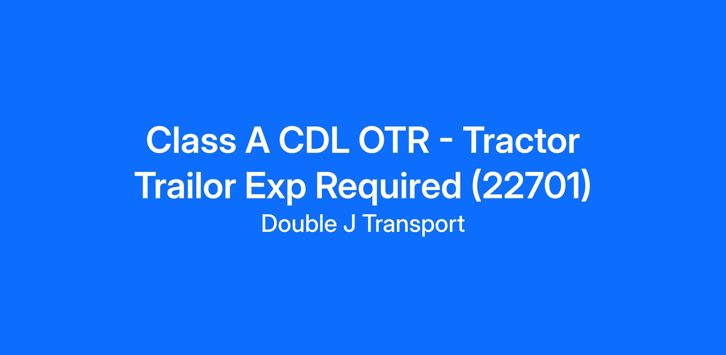 Class A CDL OTR - Tractor Trailor Exp Required (22701)