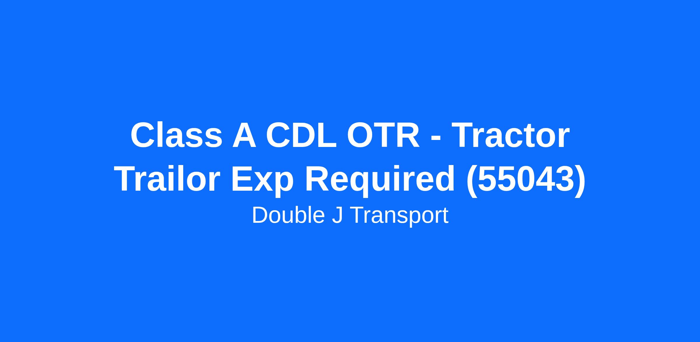 Class A CDL OTR - Tractor Trailor Exp Required (55043)