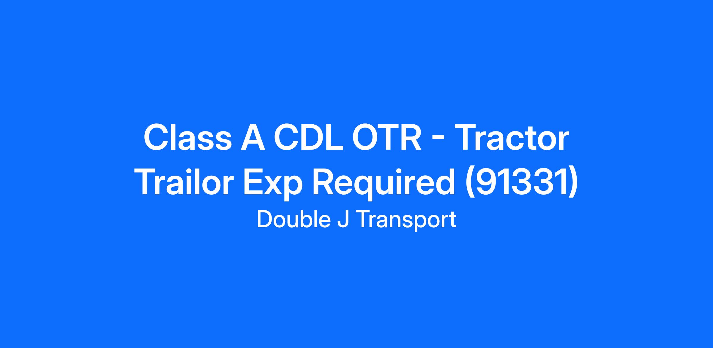 Class A CDL OTR - Tractor Trailor Exp Required (91331)