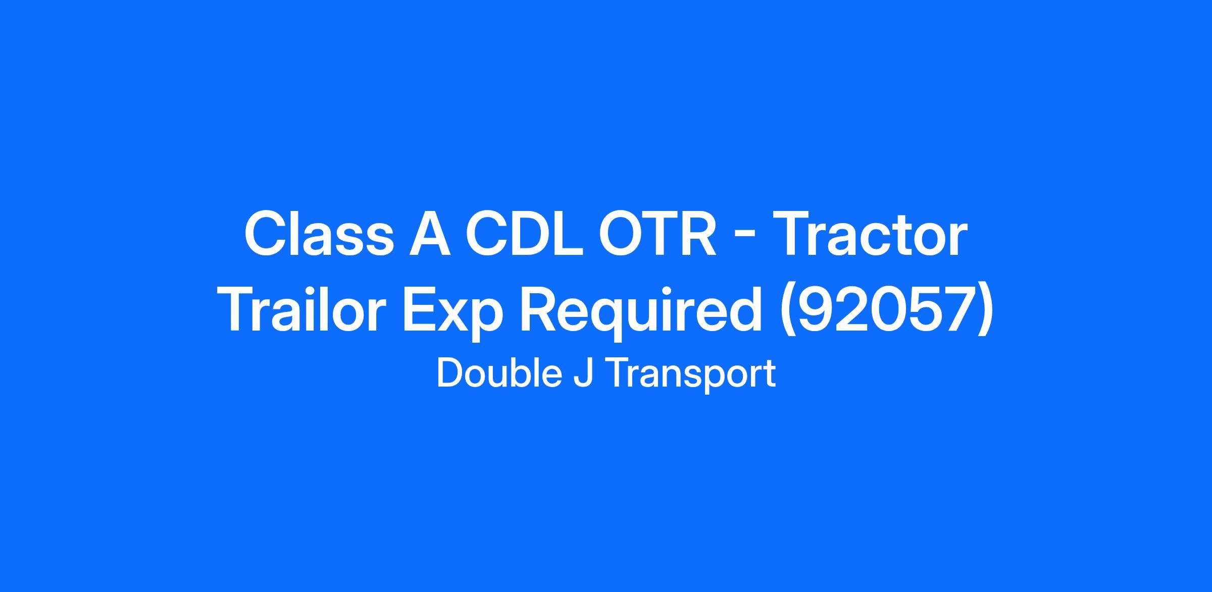 Class A CDL OTR - Tractor Trailor Exp Required (92057)