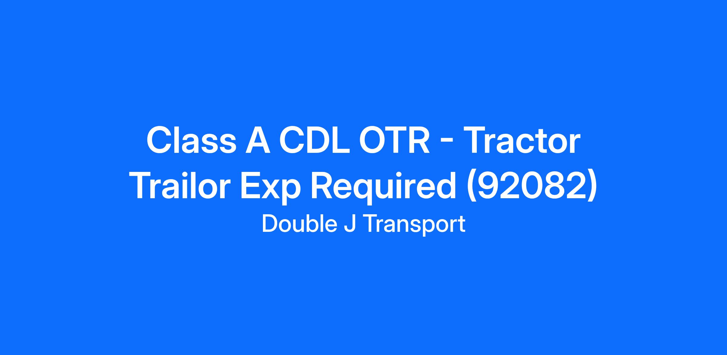 Class A CDL OTR - Tractor Trailor Exp Required (92082)