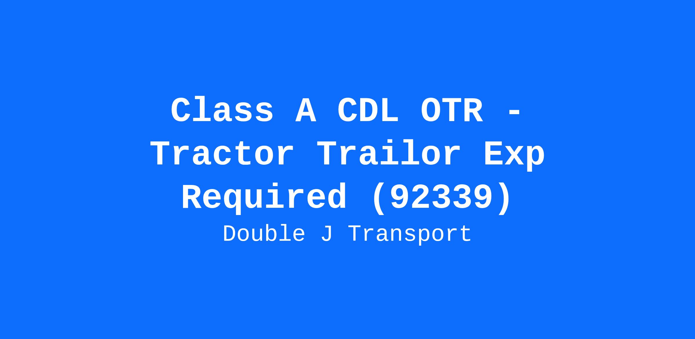 Class A CDL OTR - Tractor Trailor Exp Required (92339)
