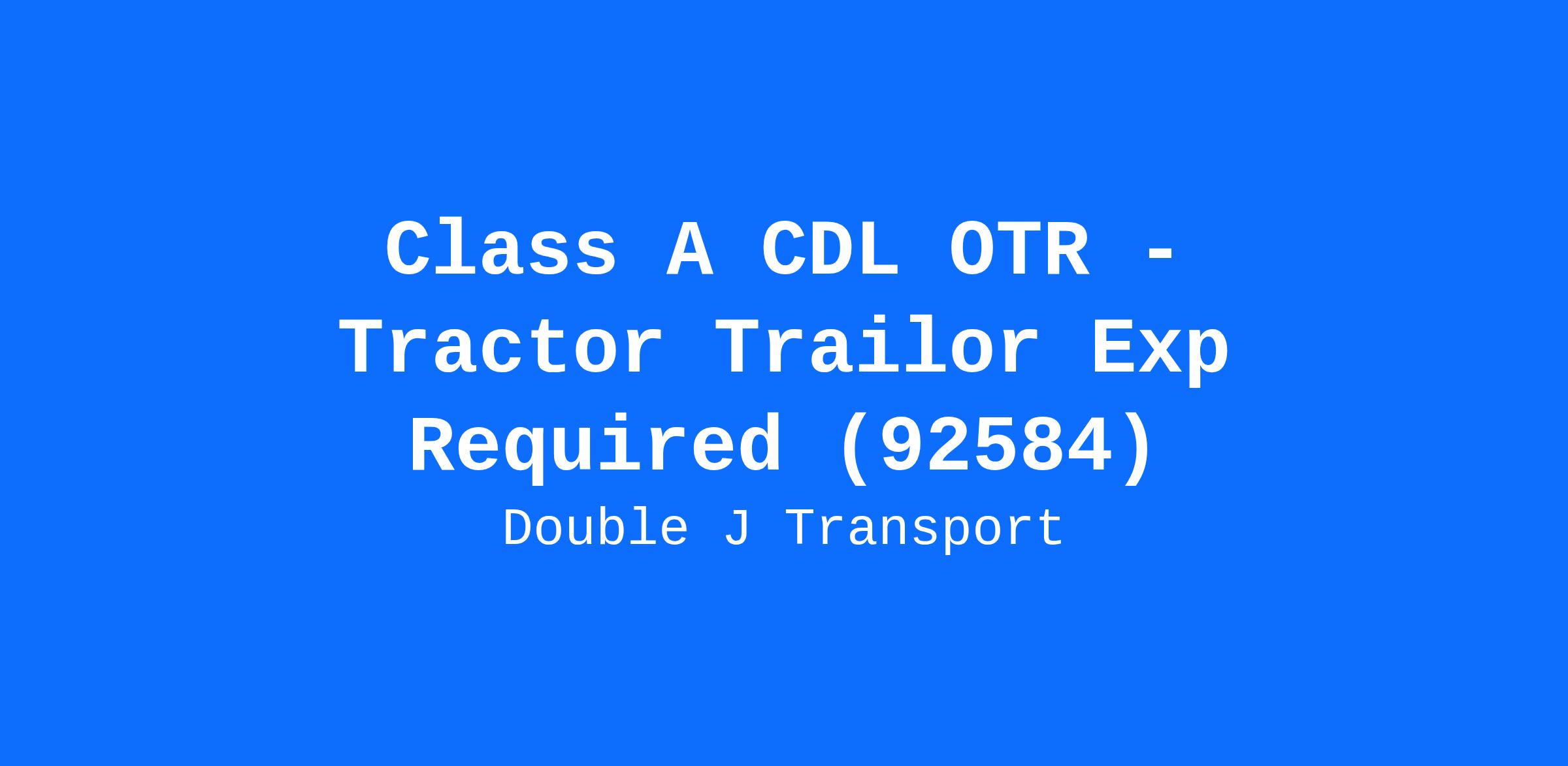 Class A CDL OTR - Tractor Trailor Exp Required (92584)
