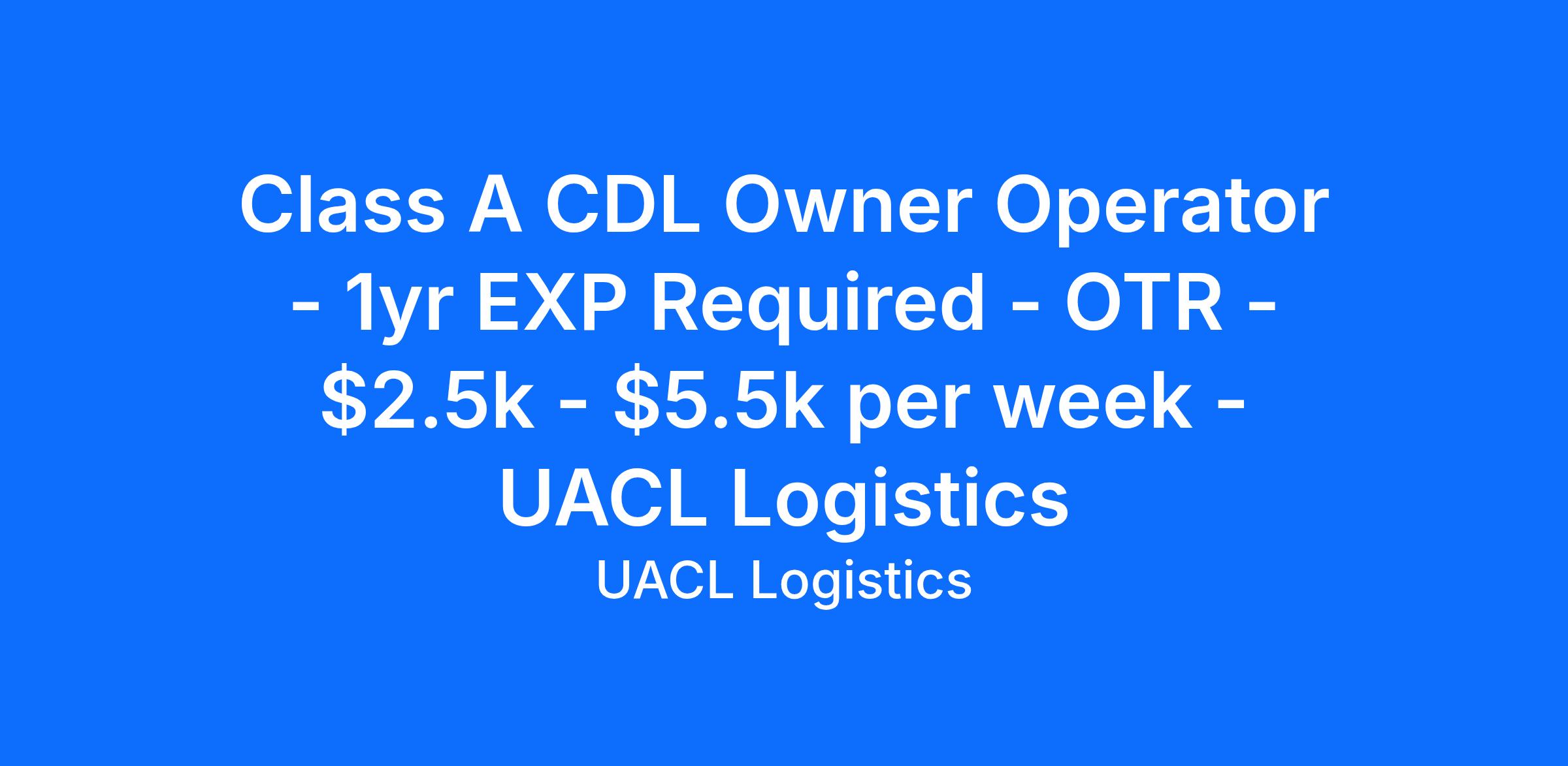 Class A CDL Owner Operator - 1yr EXP Required - OTR - $2.5k - $5.5k per week - UACL Logistics