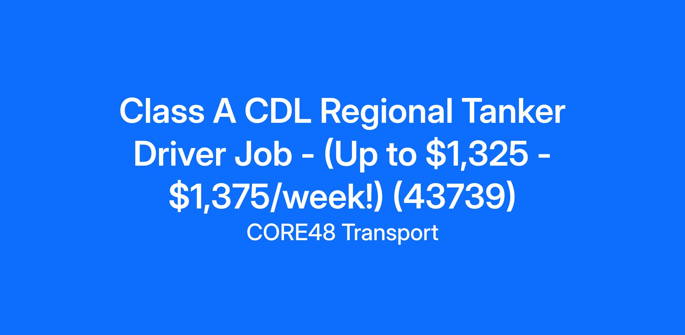 Class A CDL Regional Tanker Driver Job - (Up to $1,325 - $1,375/week!) (43739)