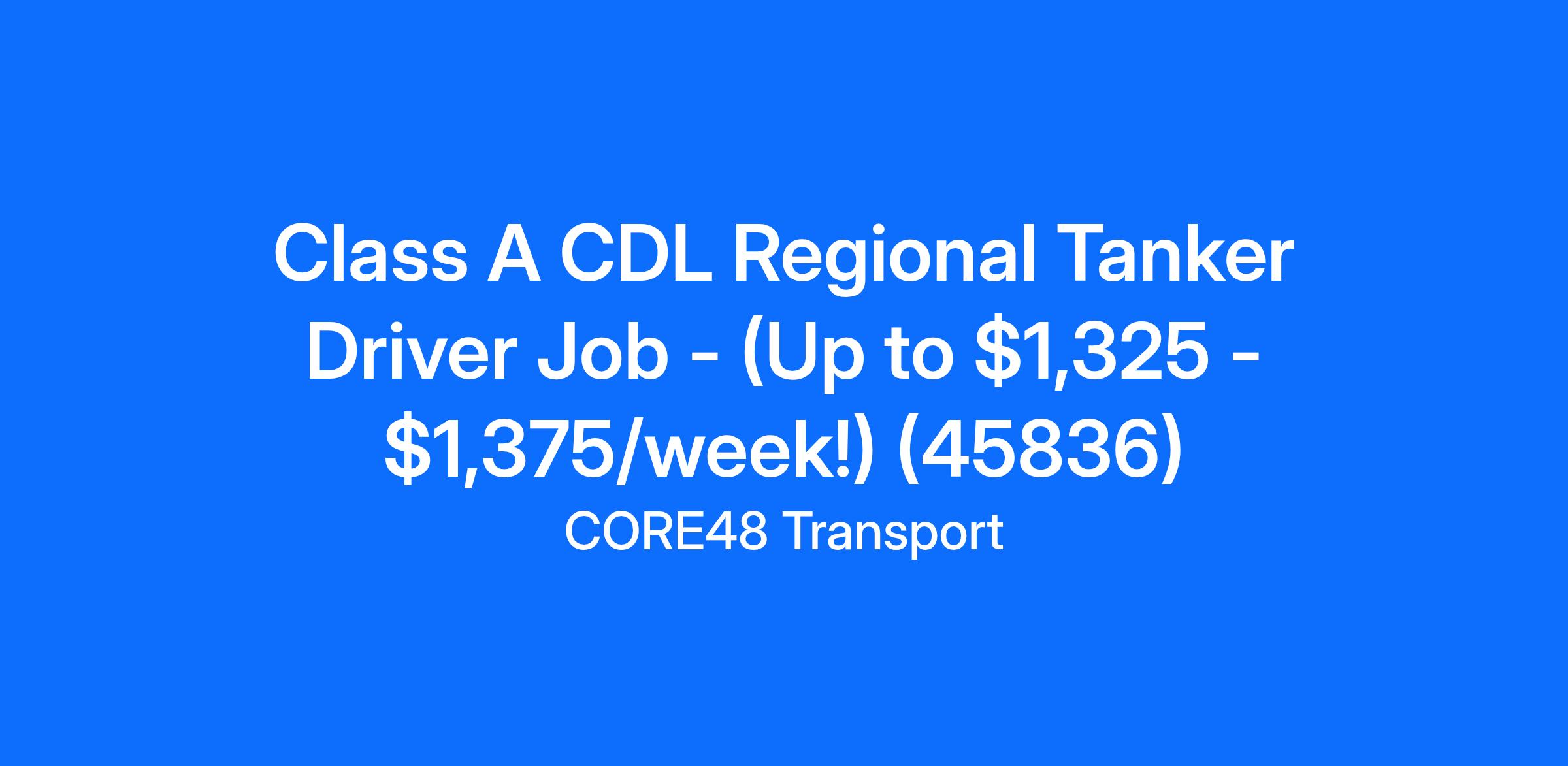 Regional CDL-A Tanker Drivers!