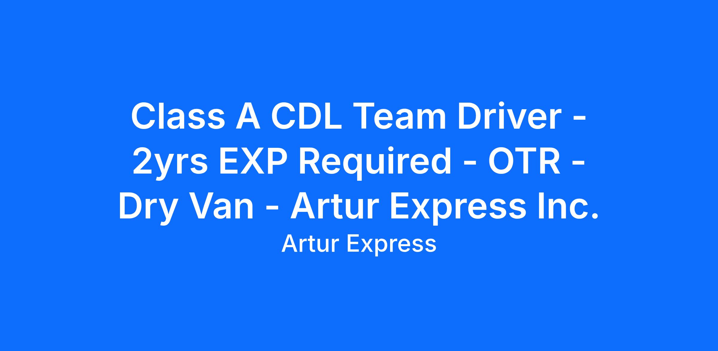 Class A CDL Team Driver - 2yrs EXP Required - OTR - Dry Van - Artur Express Inc.