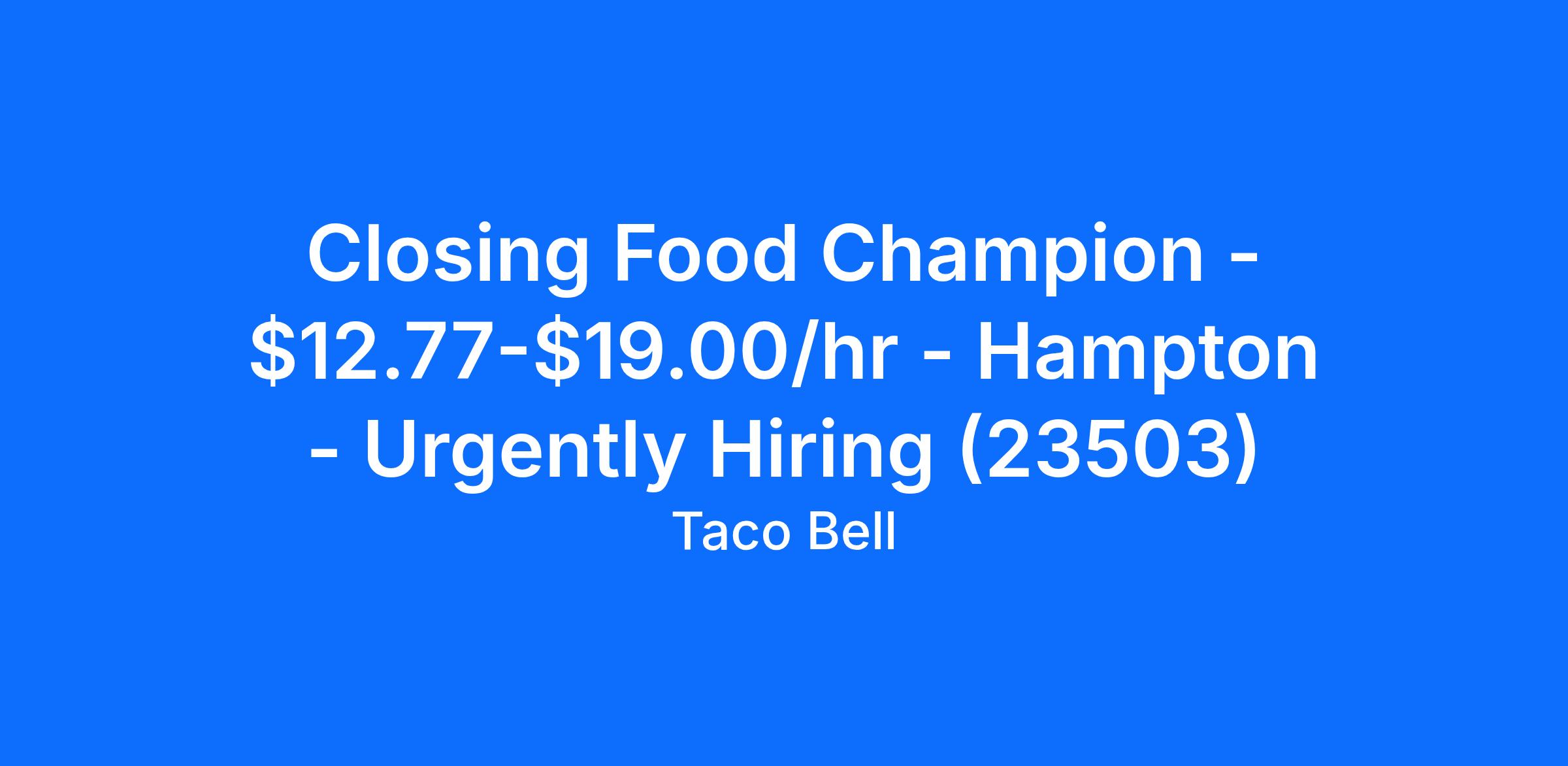 Closing Food Champion - $12.77-$19.00/hr - Hampton - Urgently Hiring (23503)