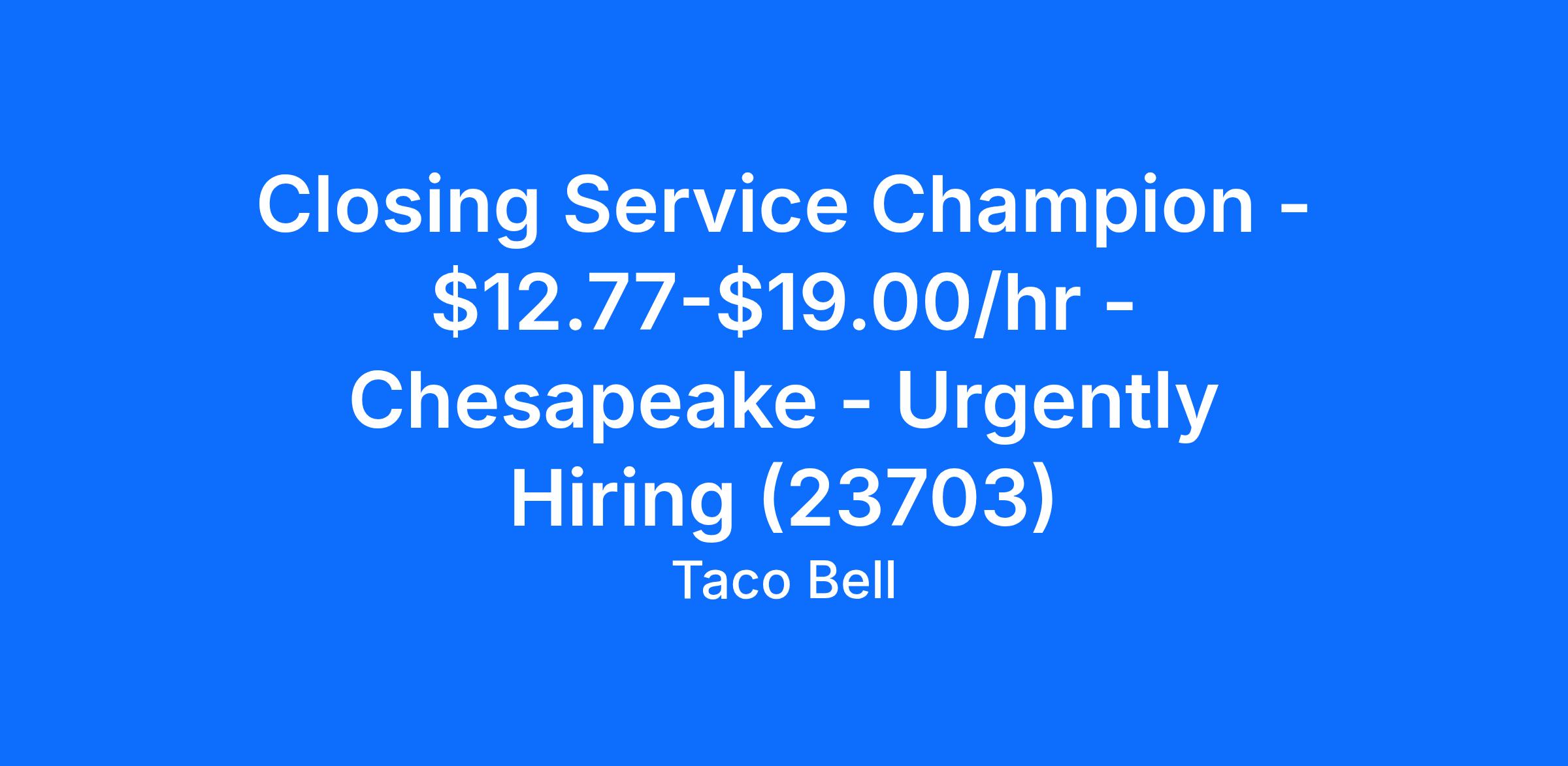 Closing Service Champion - $12.77-$19.00/hr - Chesapeake - Urgently Hiring (23703)