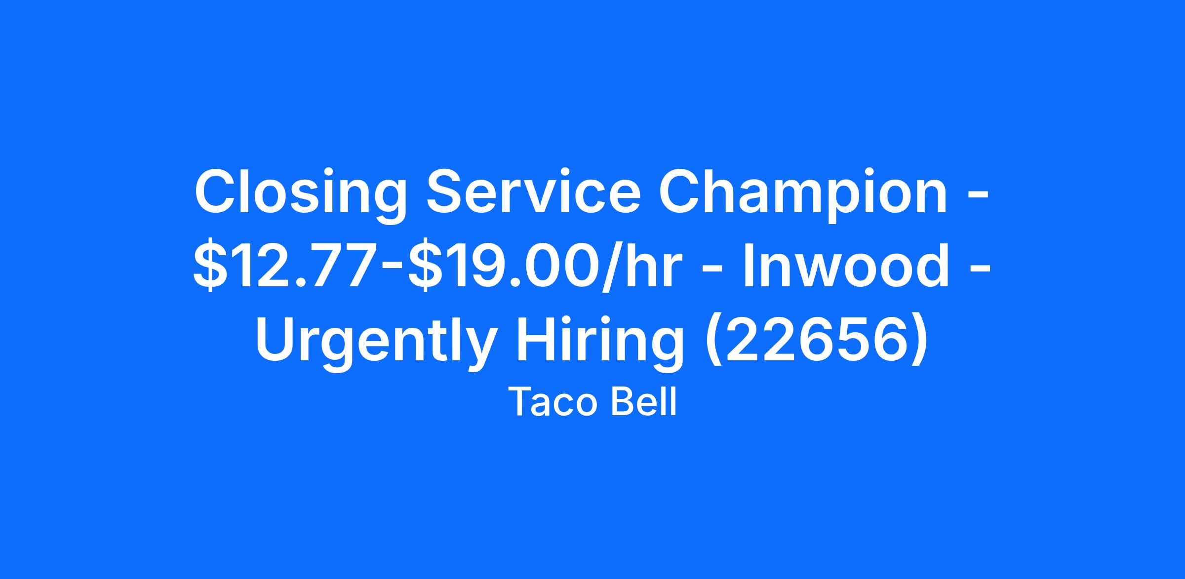 Closing Service Champion - $12.77-$19.00/hr - Inwood - Urgently Hiring (22656)