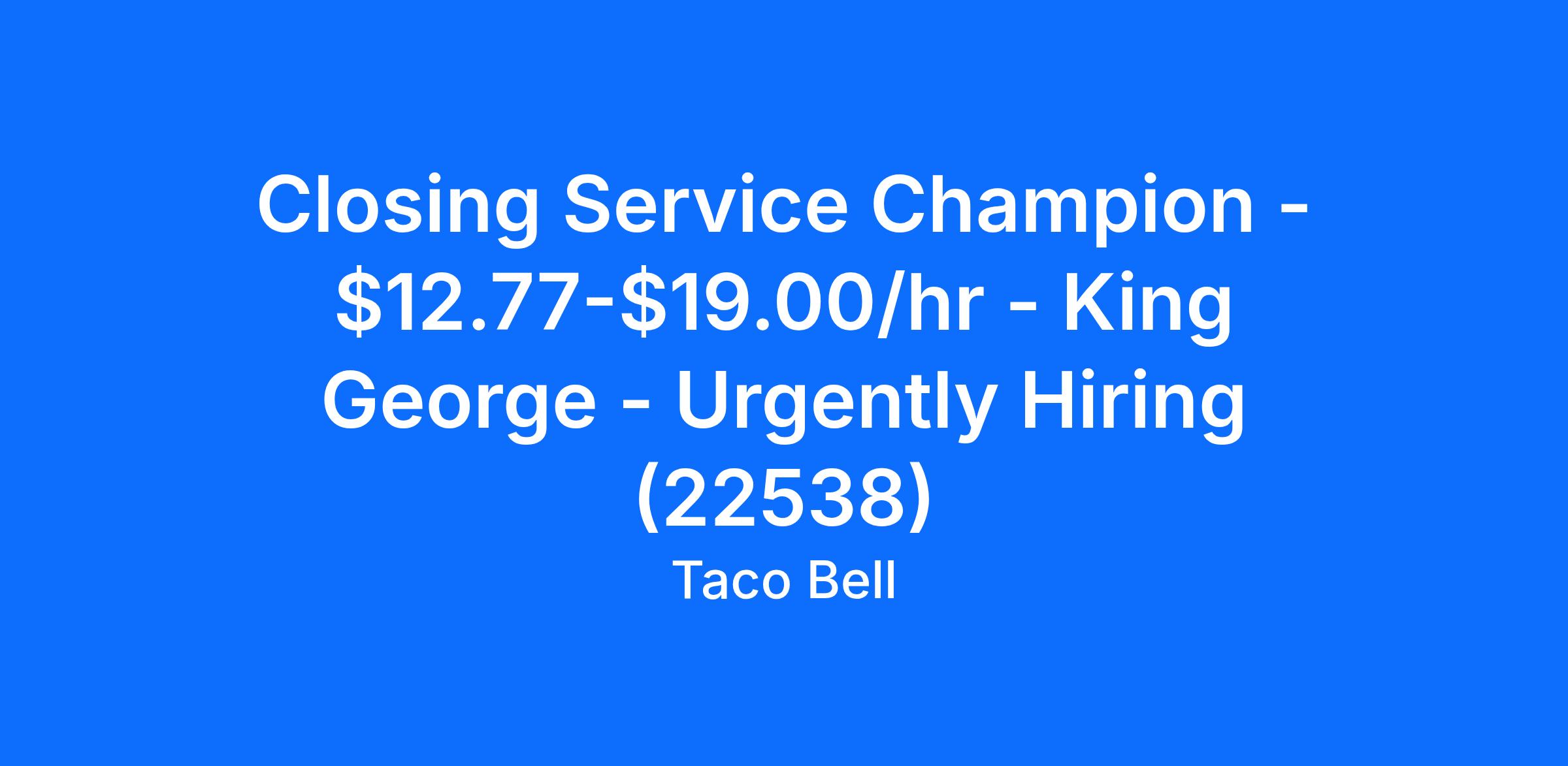 Closing Service Champion - $12.77-$19.00/hr - King George - Urgently Hiring (22538)