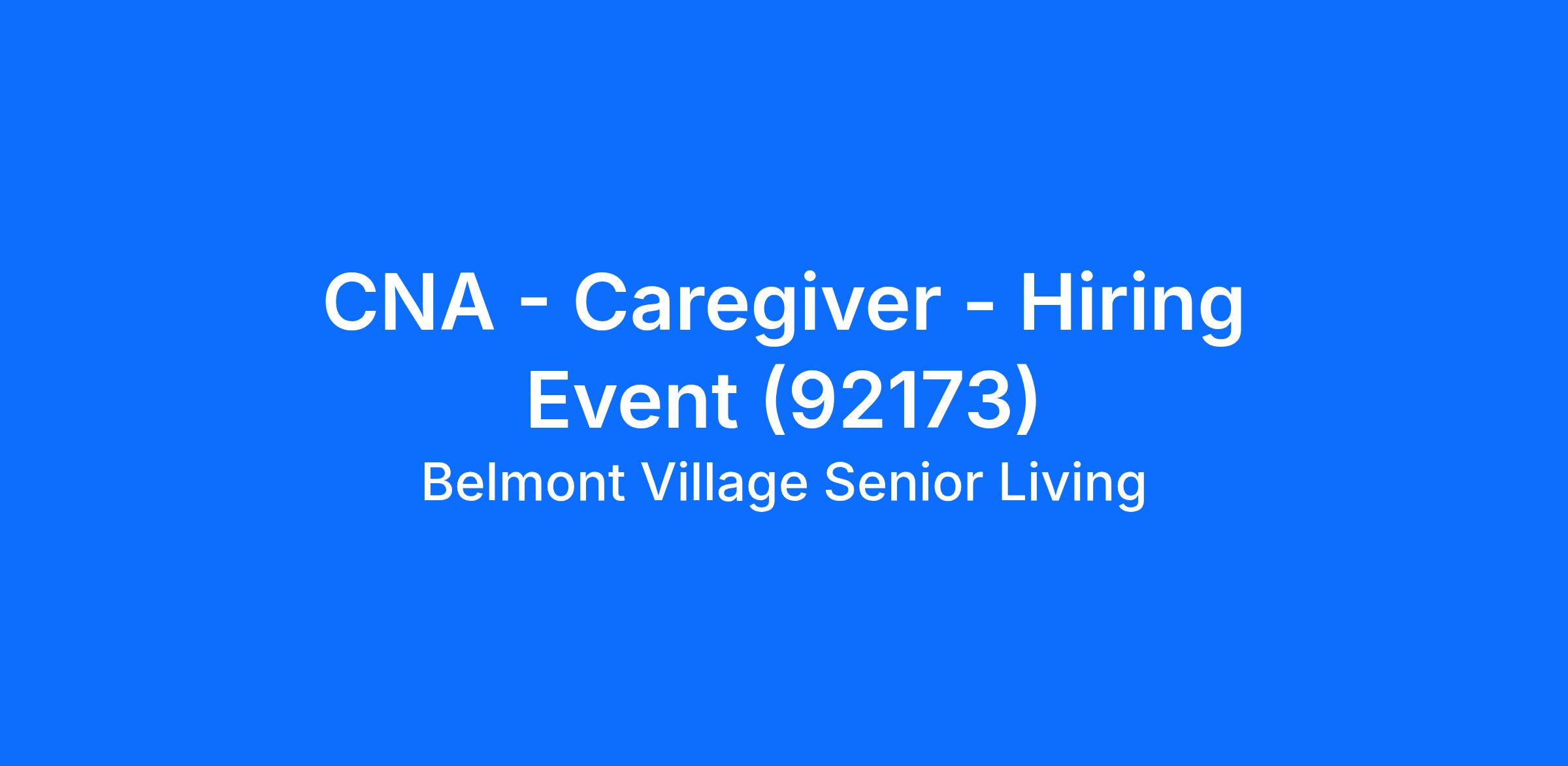 Belmont Village Senior Living Sabre Springs Hiring Event! Interviews will be conducted and offers made to highly qualified candidates on a first come, first serve basis.