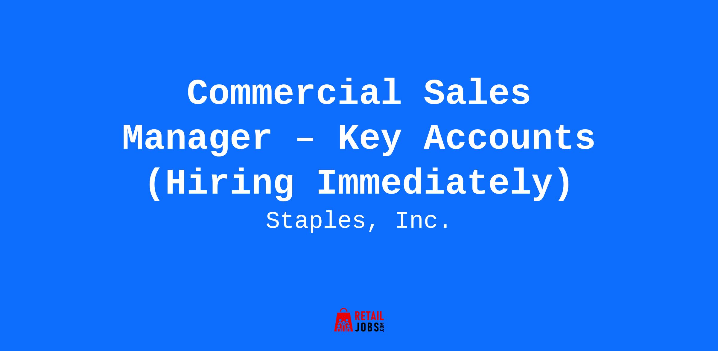 Commercial Sales Manager – Key Accounts (Hiring Immediately)