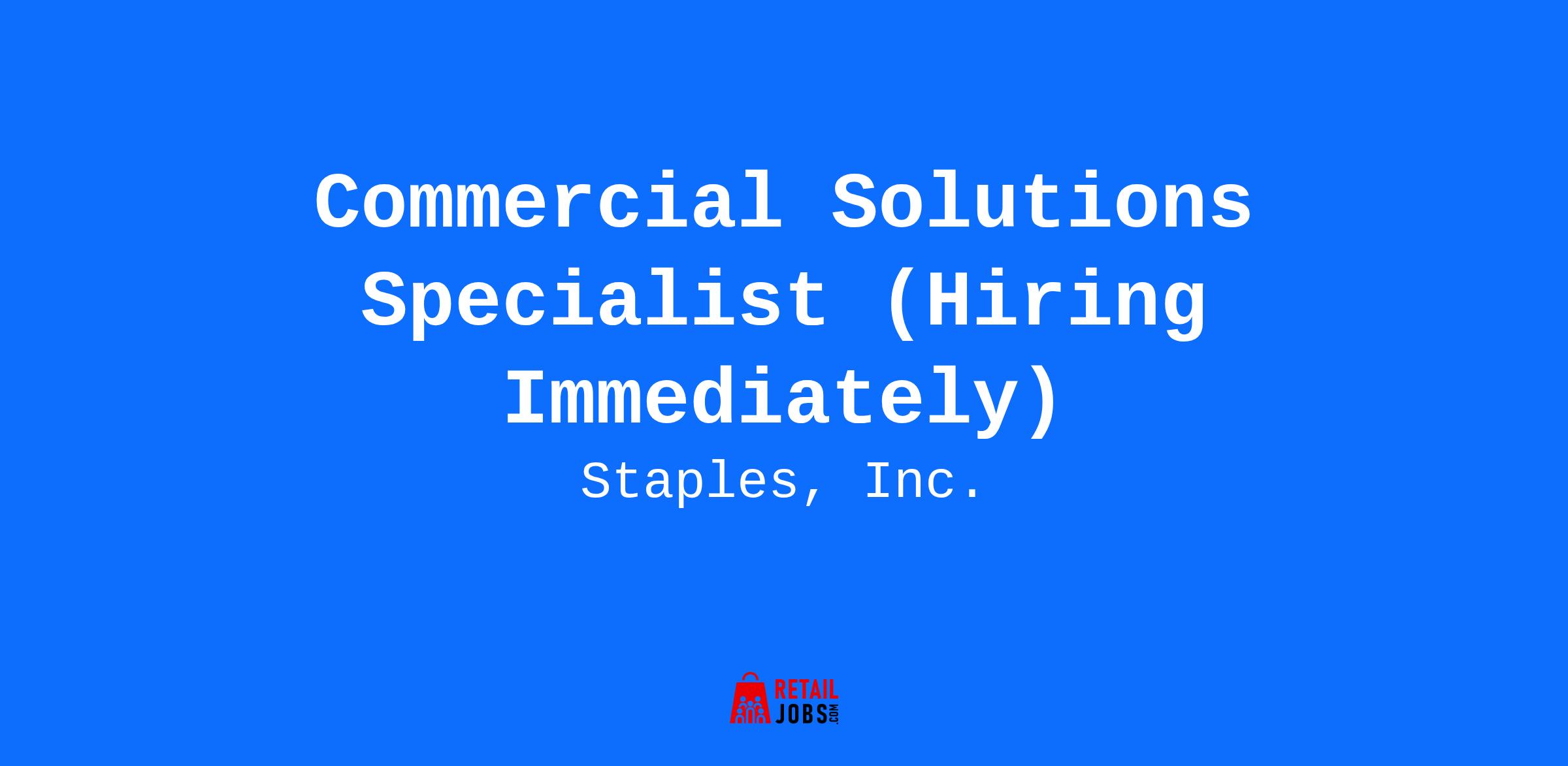 Commercial Solutions Specialist (Hiring Immediately)