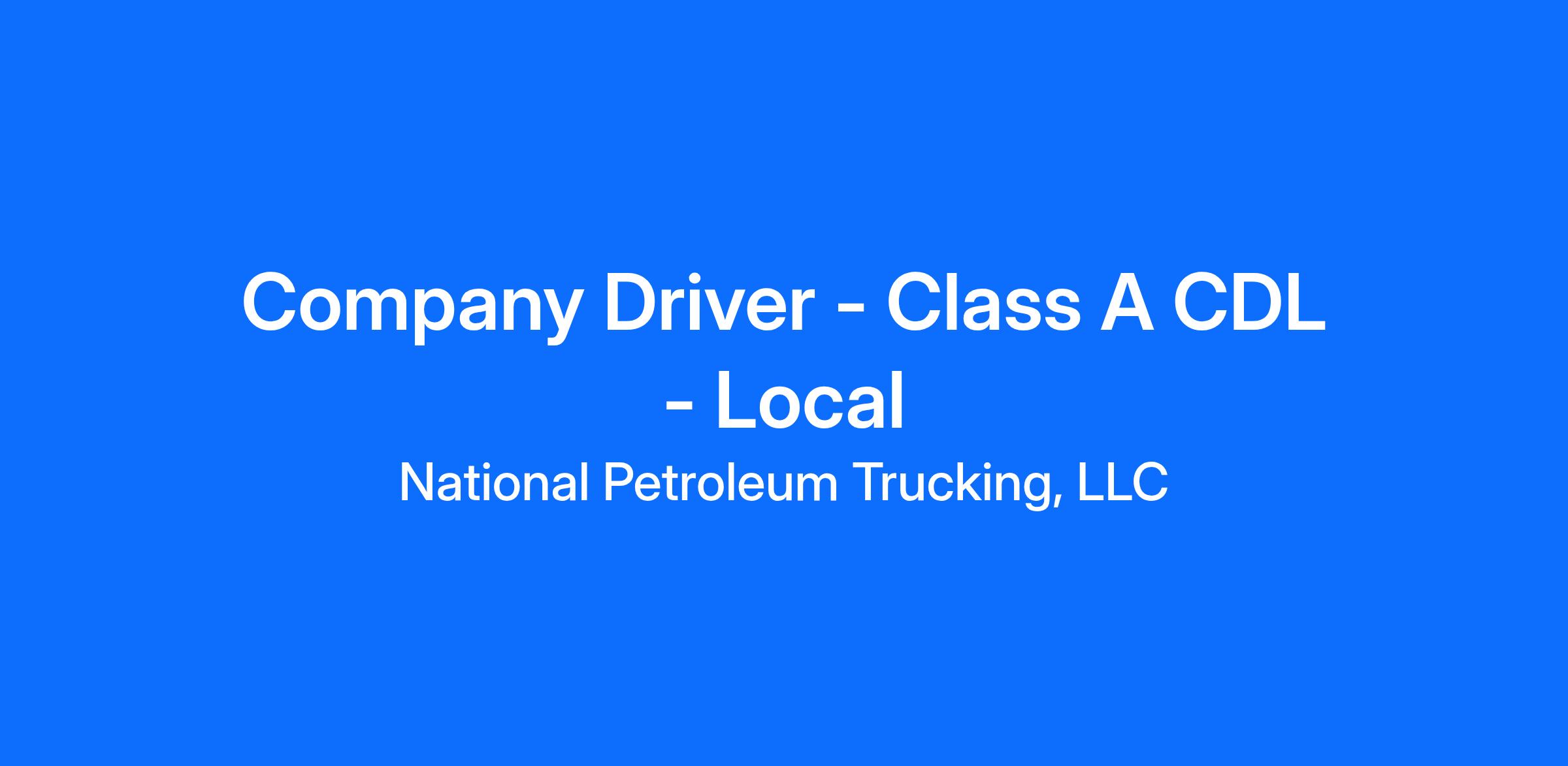Company Driver - Class A CDL - Local