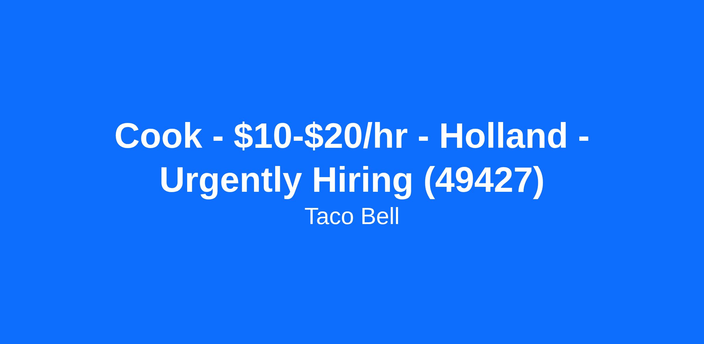 Cook - $10-$20/hr - Holland - Urgently Hiring (49427)