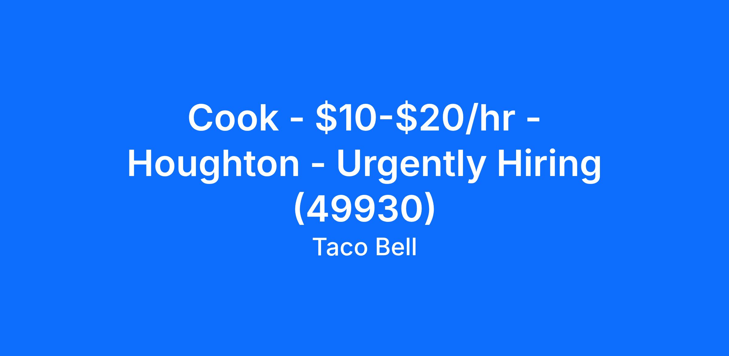 Cook - $10-$20/hr - Houghton - Urgently Hiring (49930)