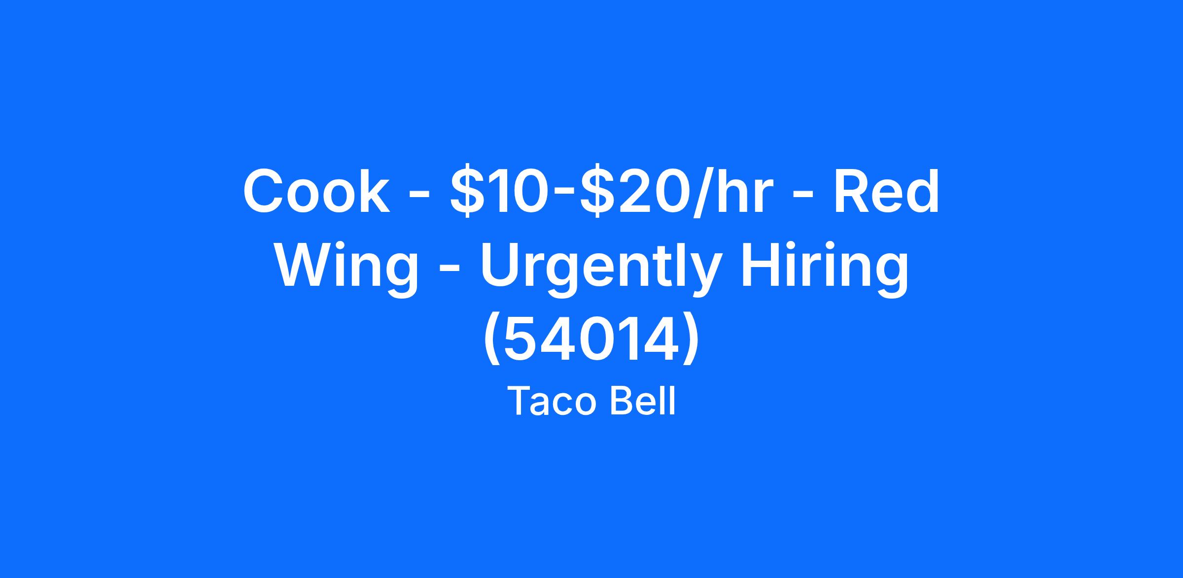 Cook - $10-$20/hr - Red Wing - Urgently Hiring (54014)