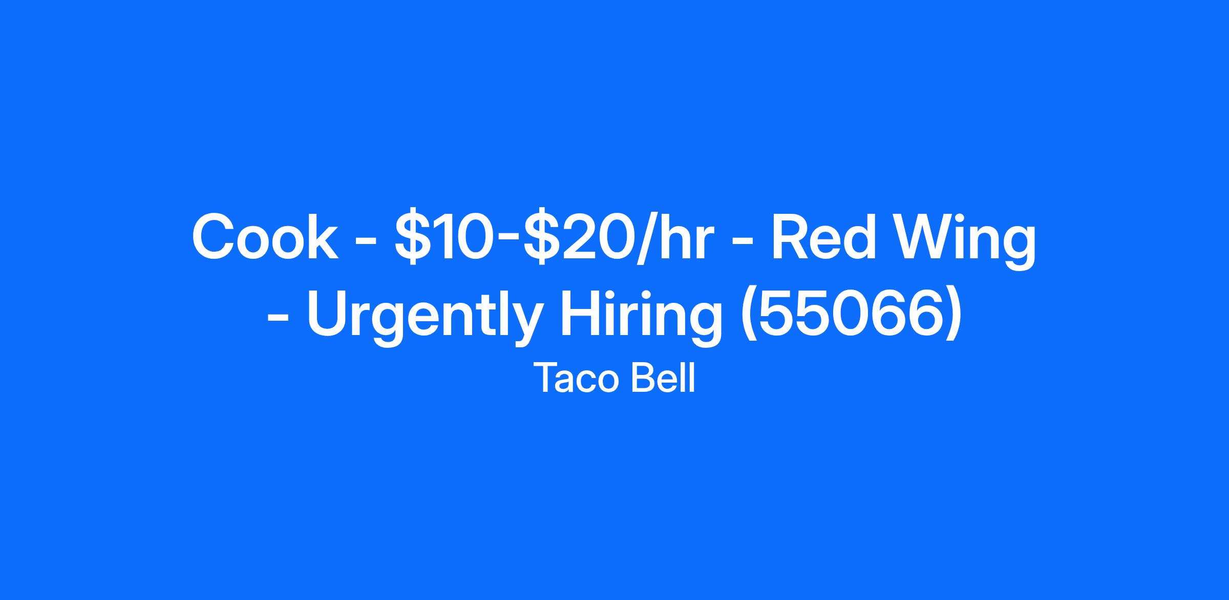 Cook - $10-$20/hr - Red Wing - Urgently Hiring (55066)