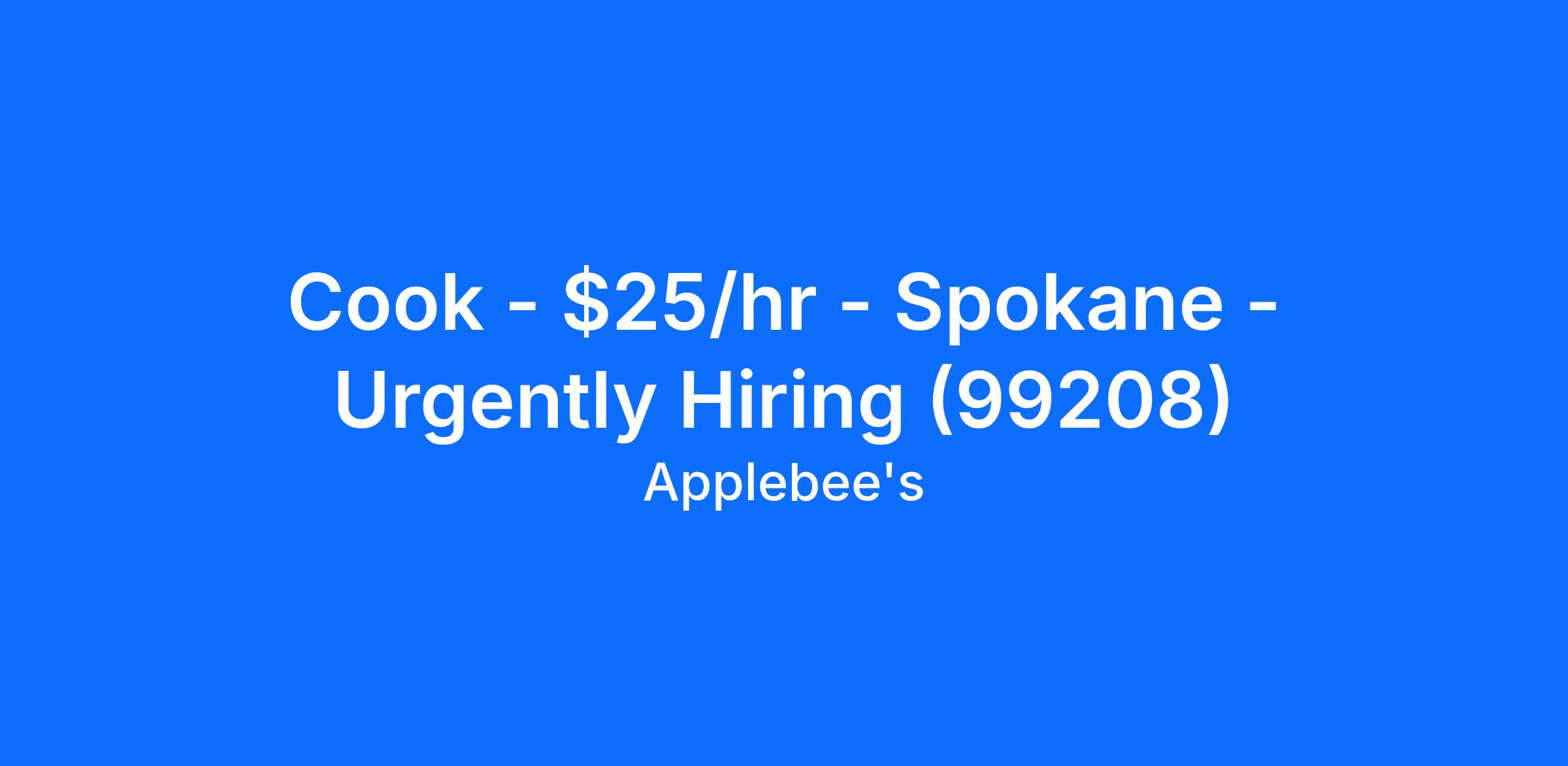 Cook - $25/hr - Spokane - Urgently Hiring (99208)