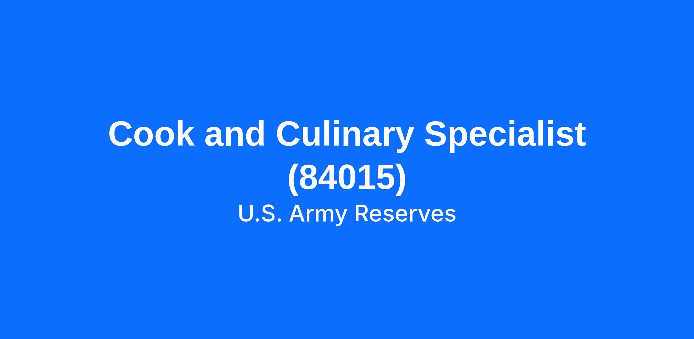 Cook and Culinary Specialist (84015)