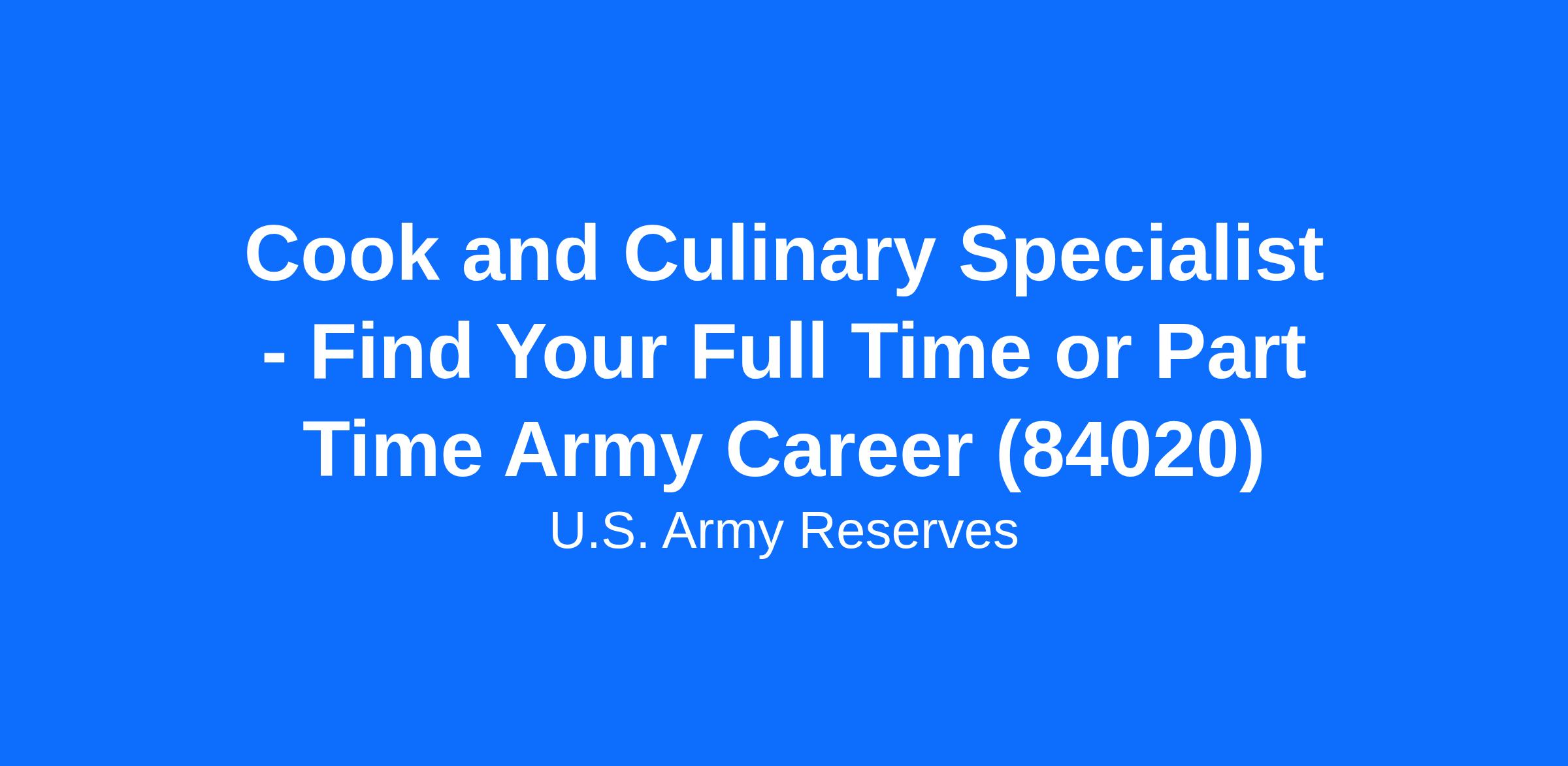 Cook and Culinary Specialist - Find Your Full Time or Part Time Army Career (84020)