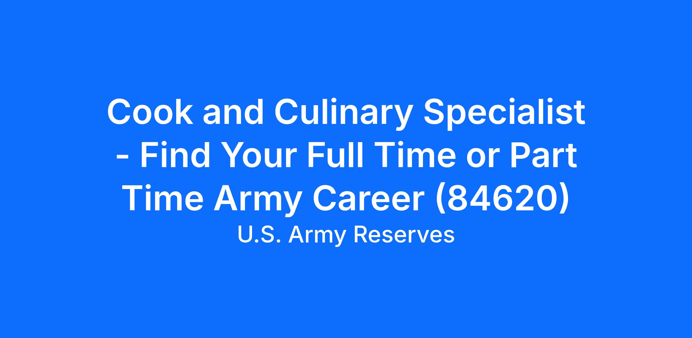 Cook and Culinary Specialist - Find Your Full Time or Part Time Army Career (84620)
