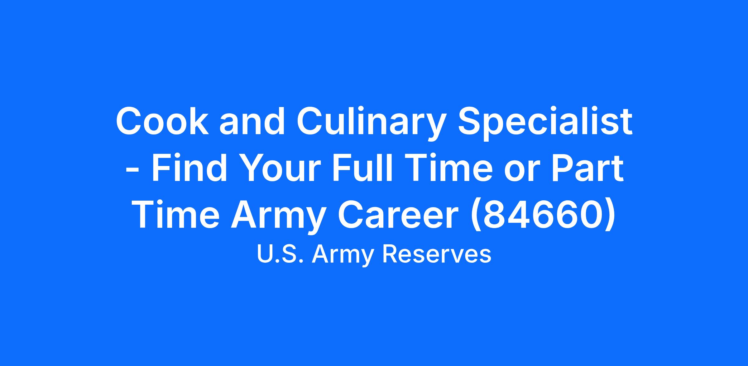 Cook and Culinary Specialist - Find Your Full Time or Part Time Army Career (84660)