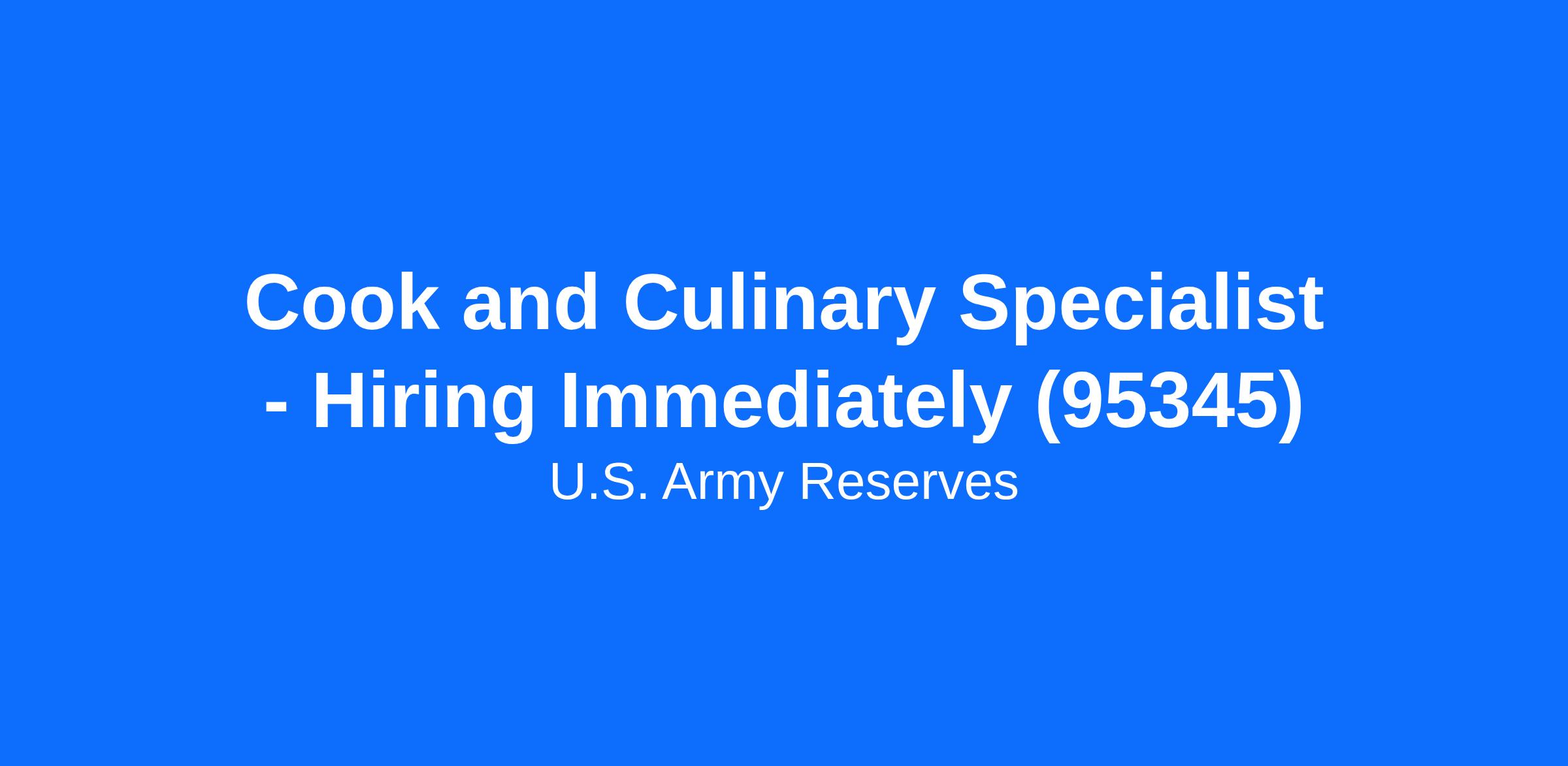 Cook and Culinary Specialist - Hiring Immediately (95345)