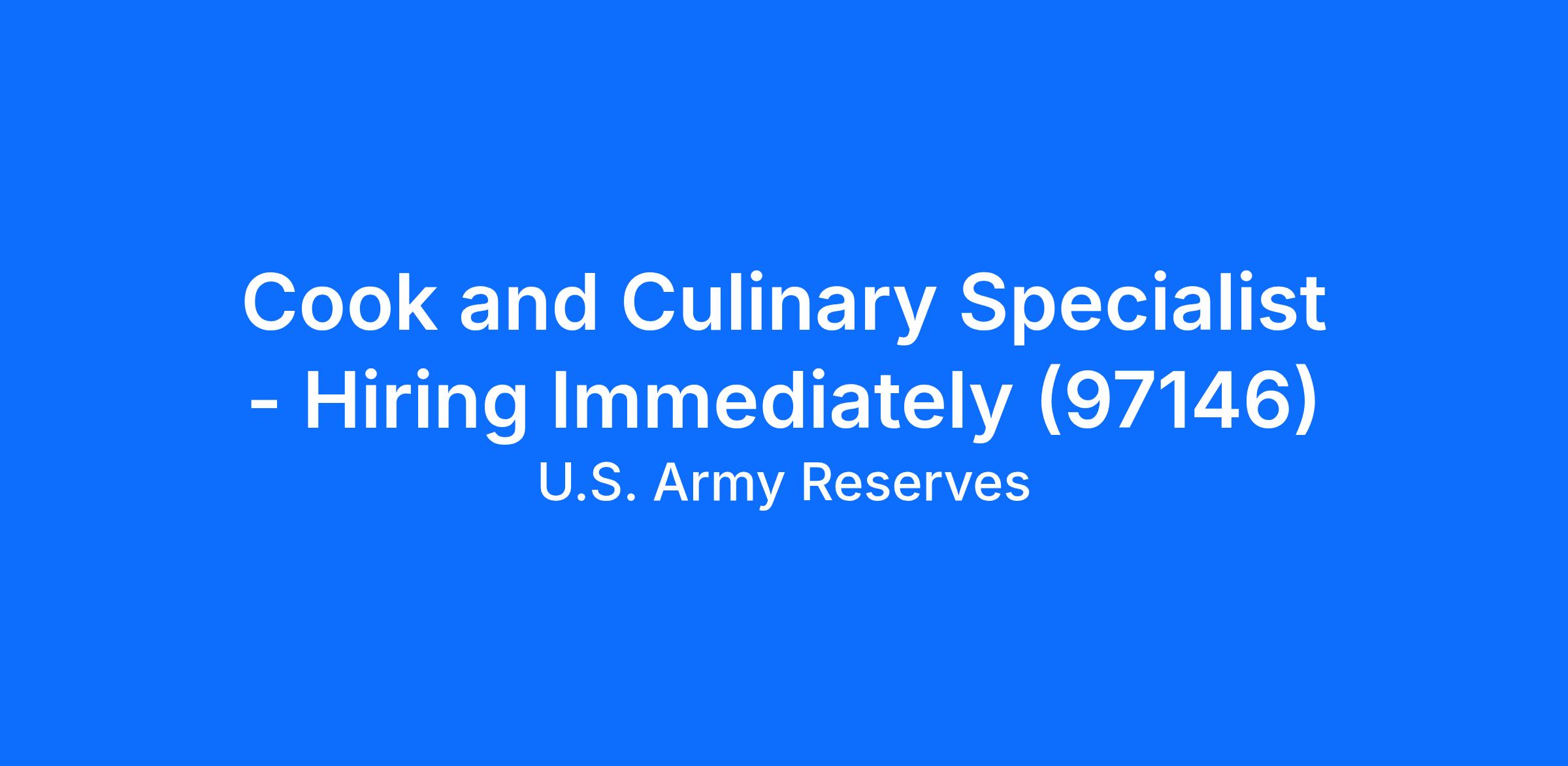 Cook and Culinary Specialist - Hiring Immediately (97146)