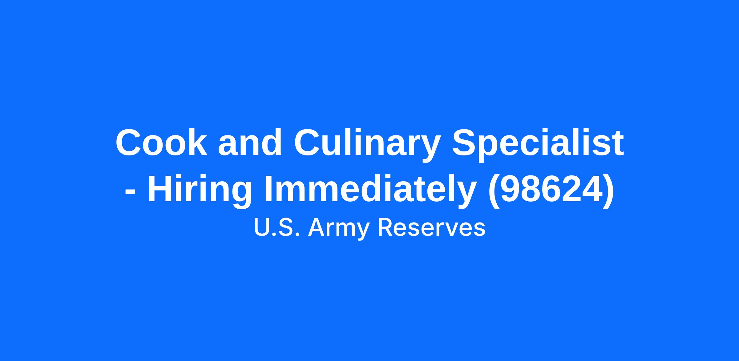 Cook and Culinary Specialist - Hiring Immediately (98624)