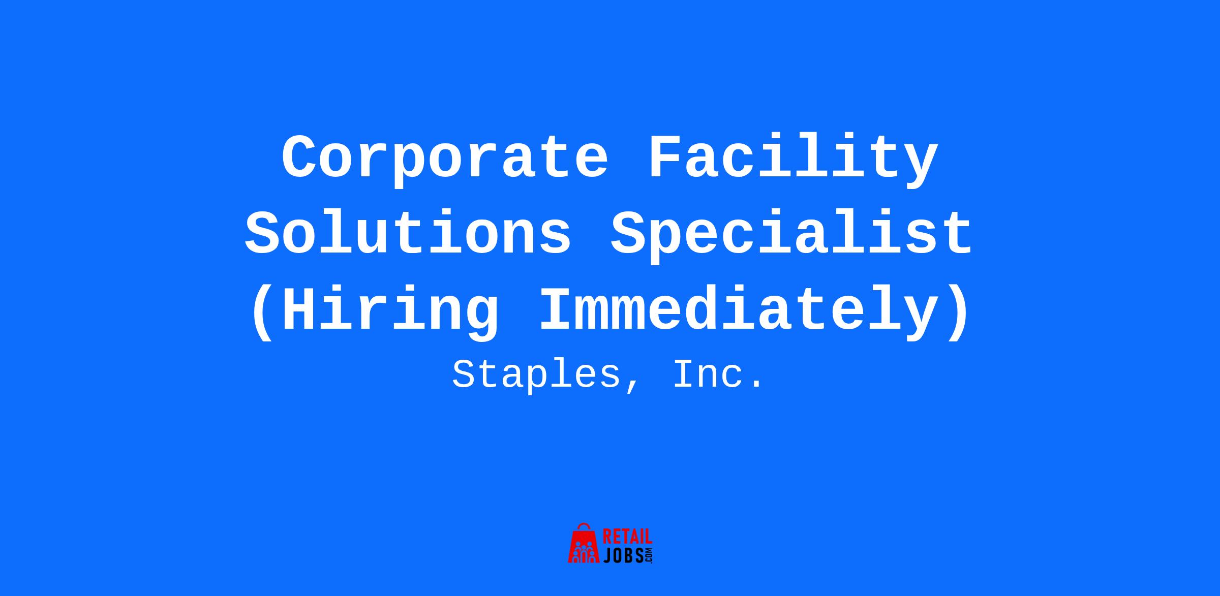 Corporate Facility Solutions Specialist (Hiring Immediately)